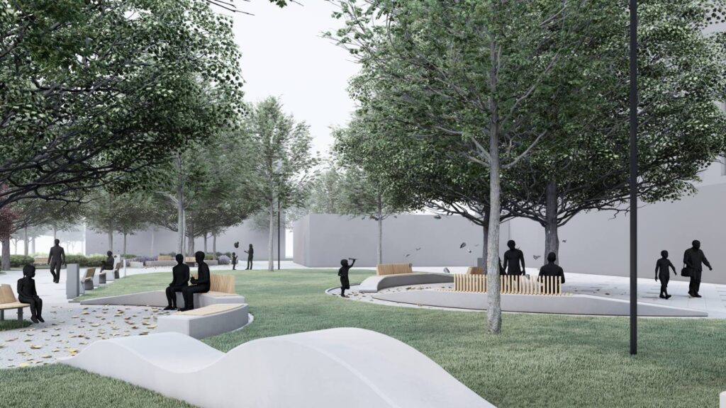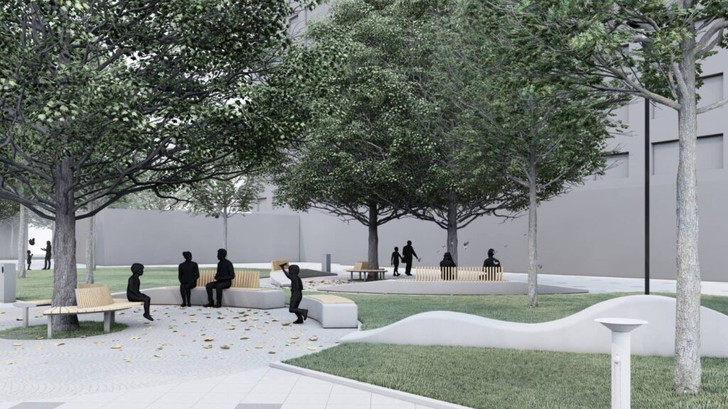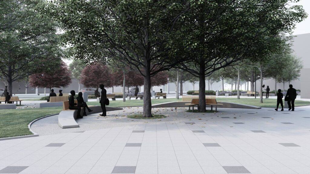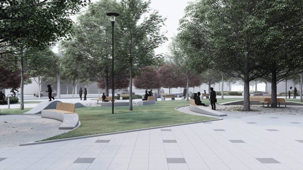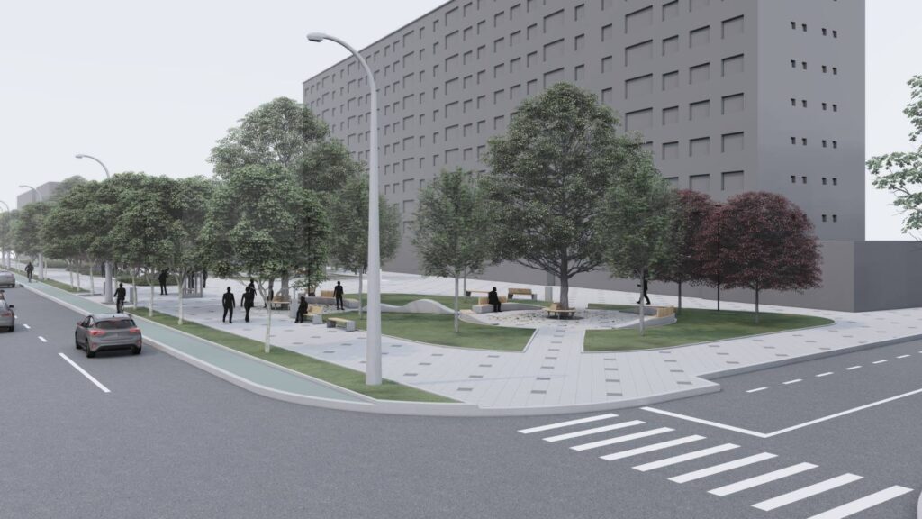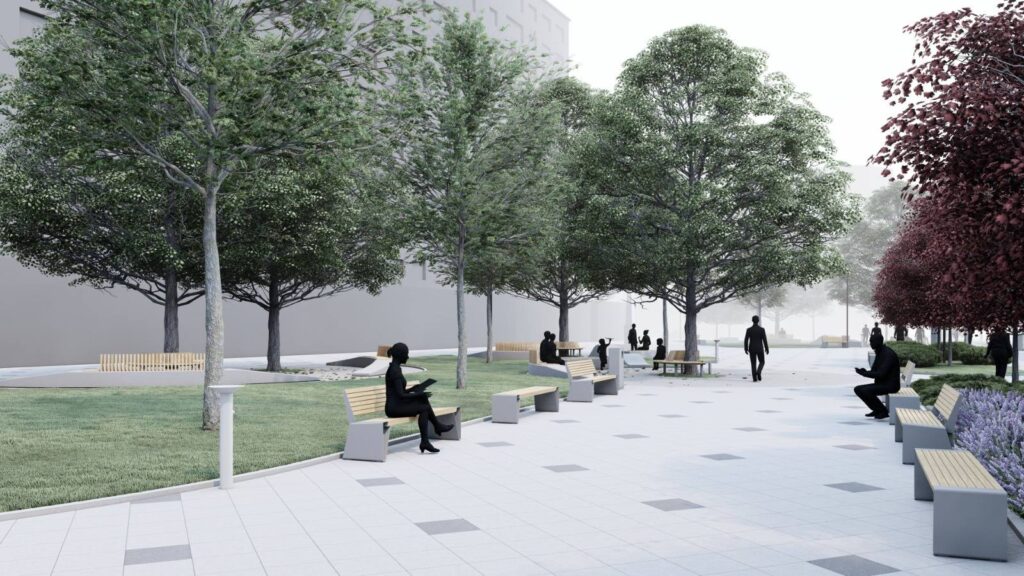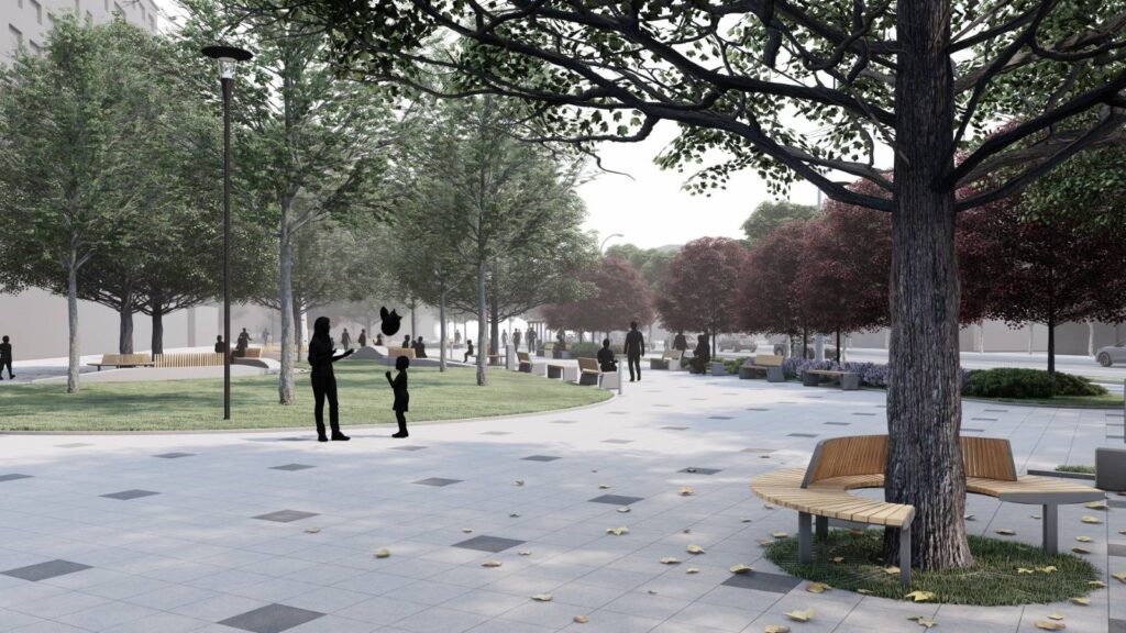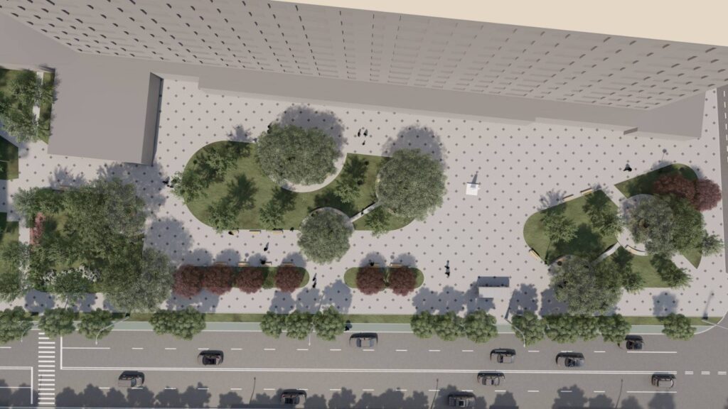 În plus, proiectul integrează soluții moderne de mobilier urban inteligent – bănci cu USB, pubele pentru colectare selectivă, stații de încărcare pentru biciclete și trotinete electrice, cișmele și o fântână arteziană în pavaj. Iluminatul public va fi modernizat cu sisteme LED eficiente energetic și cu telegestiune, iar rețelele de gaz supraterane vor fi îngropate.