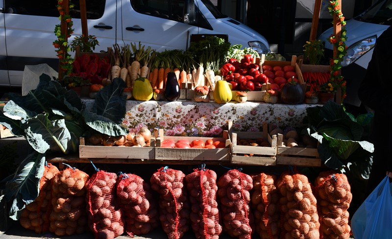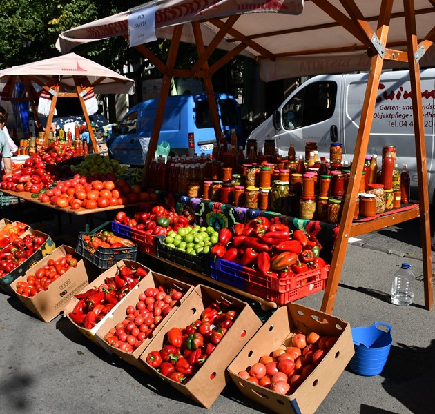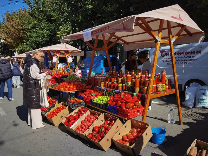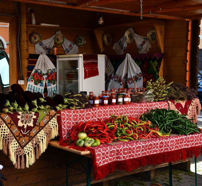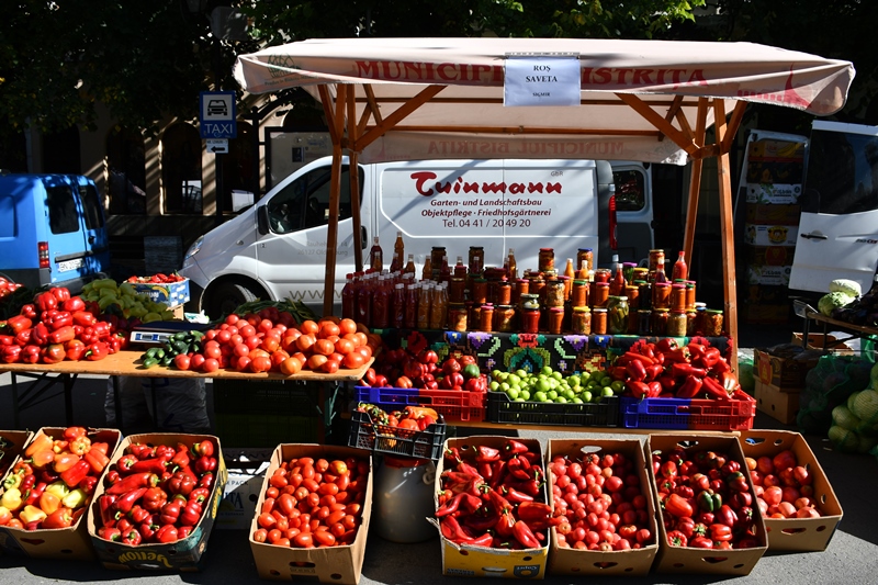 Pe pietonalul Liviu Rebreanu și în zona din jurul Bisericii Evanghelice sunt amenajate standuri unde sunt expuse spre vânzare legume și fructe proaspete, produse apicole, siropuri, murături și lista poate continua.
