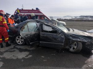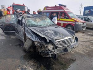 Din primele informații, în accident a fost implicat un singur autoturism marca Mercedes. Se pare că șoferul a pierdut controlul volanului și s-a răsturnat.