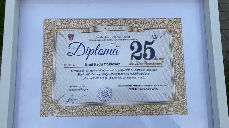 De asemenea, Emil Radu Moldovan a primit o diplomă din partea Ansamblului pentru contribuția pe care a avut-o în calitate de președinte al Consiliului Județean în susținerea activității artistice.