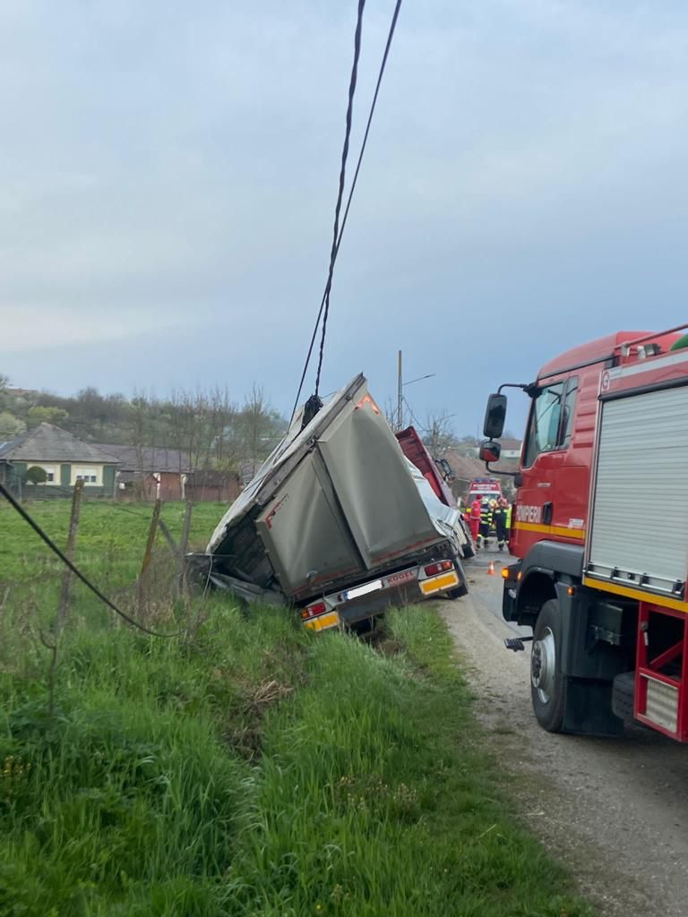 „În această dimineață, polițiștii din cadrul Secției 3 Poliție Rurală Lechința au intervenit la un accident rutier produs pe Drumul Județean 151,în localitatea Chiraleș. Din primele informații, un autotren condus de un bărbat de 43 de ani, din Miercurea Ciuc, a părăsit partea carosabilă, unde s-a răsturnat. În urma evenimentului, din fericire, nu au fost înregistrate victime. Polițiștii au dispus testarea cu aparatul etilotest a conducătorului auto, rezultatul fiind pozitiv în cazul consumului de alcool, fiind indicată valoarea de 0,83 mg/l alcool pur în aerul expirat. Șoferul a fost condus la spital pentru recoltarea de mostre biologice„, a precizat Inspectoratul de Poliție Județean Bistrița-Năsăud.