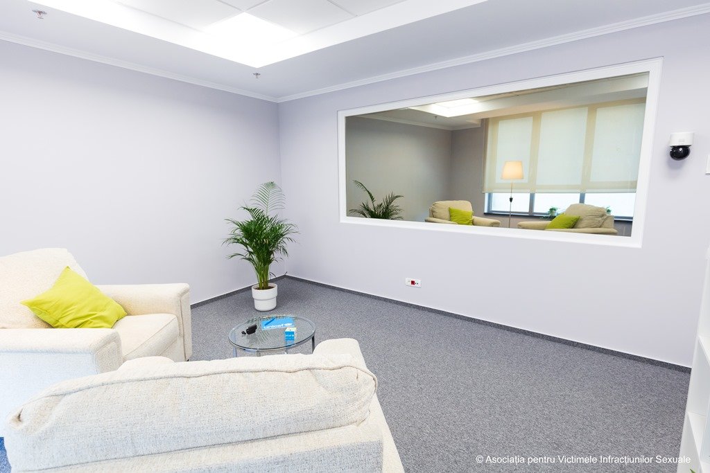 Spațiul include și o cameră tehnică, separată printr-un un perete izolat fonic și o fereastră unidirecțională, și a fost amenajat de către Asociația pentru Victimele Infracțiunilor Sexuale cu sprijinul UNICEF în România, în cadrul proiectului „Justiție pentru copiii victime ale abuzului sexual”.