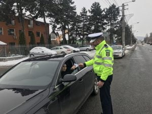 Astfel, polițiștii rutieri verifică dacă autoturismele sunt echipate corespunzător, cu anvelope de iarnă și oferă raclete inscripționate cu sfaturi preventive, conducătorilor auto.
