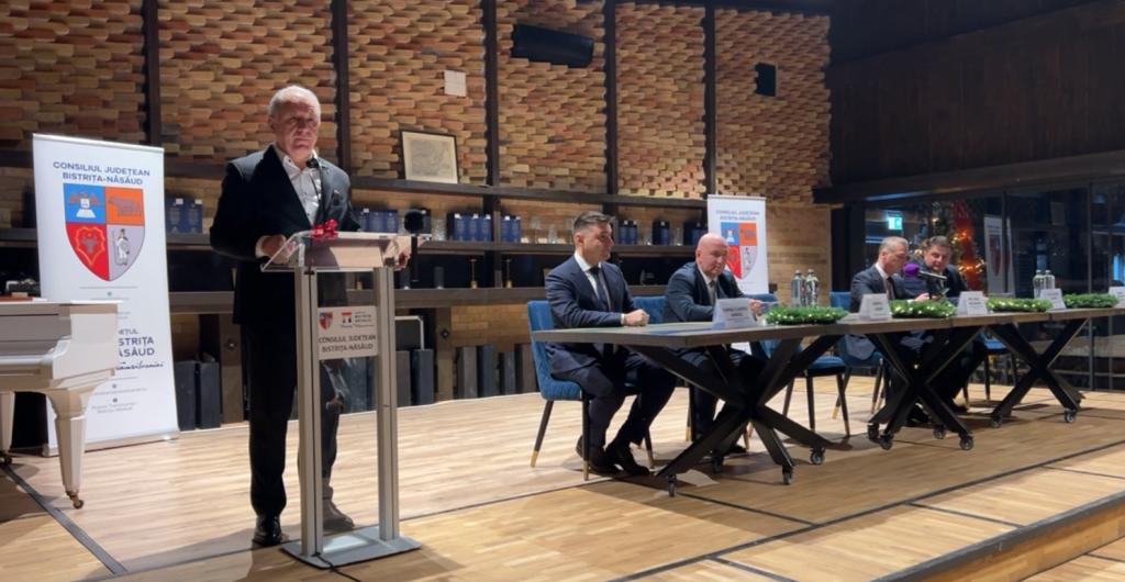 ”Suntem astăzi la o ediție jubiliară a acestui eveniment organizat de Consiliul Județean Bistrița-Năsăud, prin care încercăm să aducem mulțumire și să ne arătăm respectul – în numele cetățenilor pe care îi reprezentăm – față de o mică parte dintre cei care, prin munca lor de zi cu zi, aduc plus valoare județului Bistrița-Năsăud, îi promovează imaginea și contribuie, alături de noi, cei care avem responsabilități în administrație, la proiectele menite să îmbunătățească viața de zi cu zi a oamenilor. Spun o mică recunoaștere pentru o mică parte, deoarece sunt mult mai mulți concetățeni care ar merita astfel de aprecieri pentru ceea ce fac. Trăim perioade complicate, marcate de multiple crize, însă cred că una dintre cele mai mari probleme este lipsa de solidaritate dintre noi. La nivel local, ne străduim să facem lucruri bune și îi mulțumesc Bunului Dumnezeu că, împreună cu echipa Consiliului Județean, cu cei 62 de primari și cu întreaga administrație publică locală, am reușit să atragem investiții publice de aproximativ 2,5 miliarde de euro”, a declarat președintele Consiliului Județean Bistrița-Năsăud, Emil Radu Moldovan.