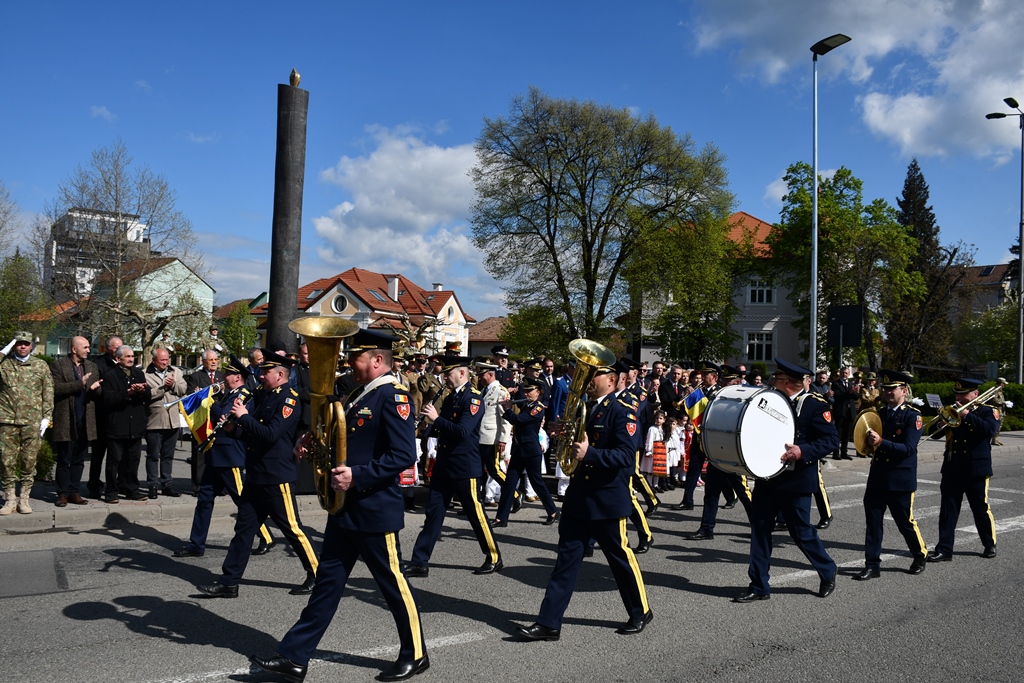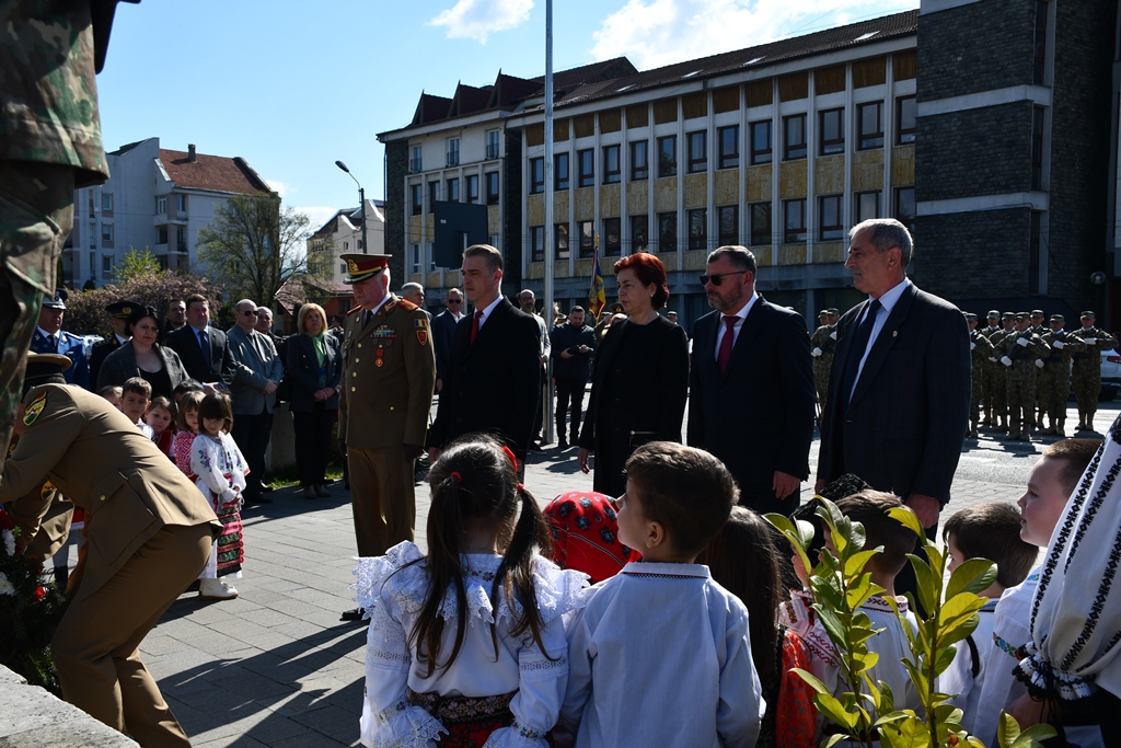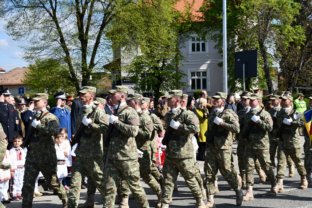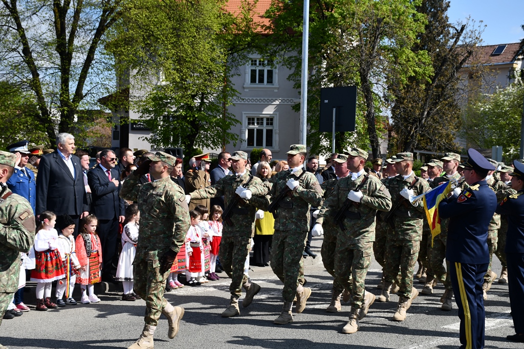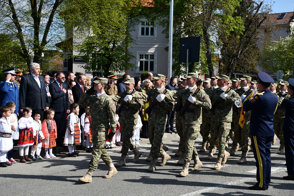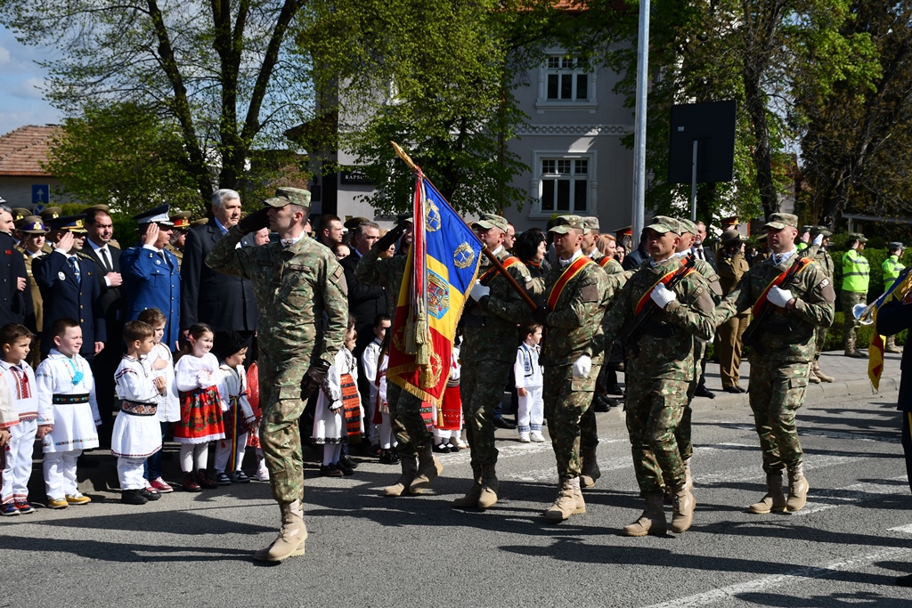 Evenimentul s-a încheiat cu depunerea unor coroane de flori la Monumentul Eroilor și defilarea militarilor prezenți la ceremonie.