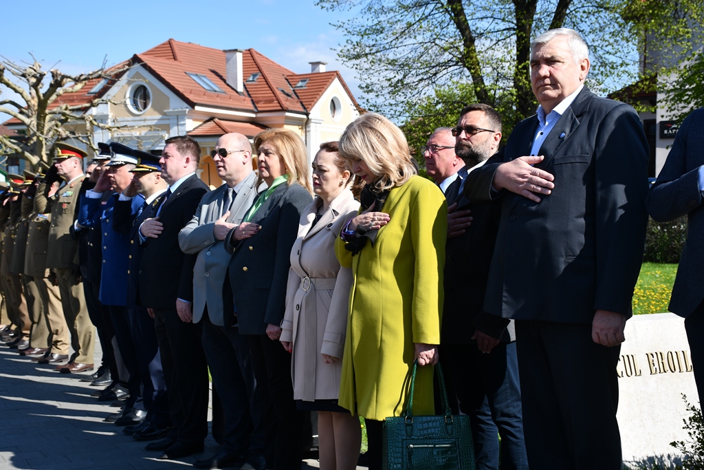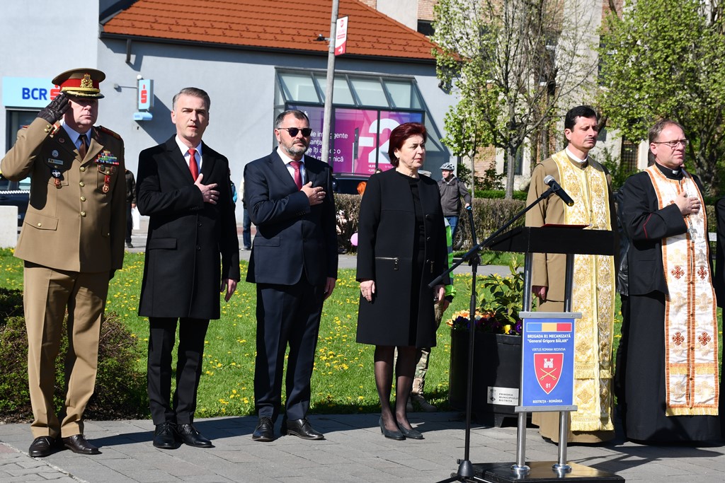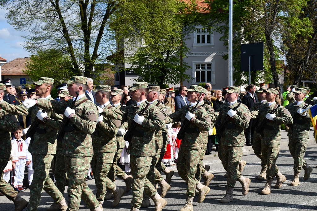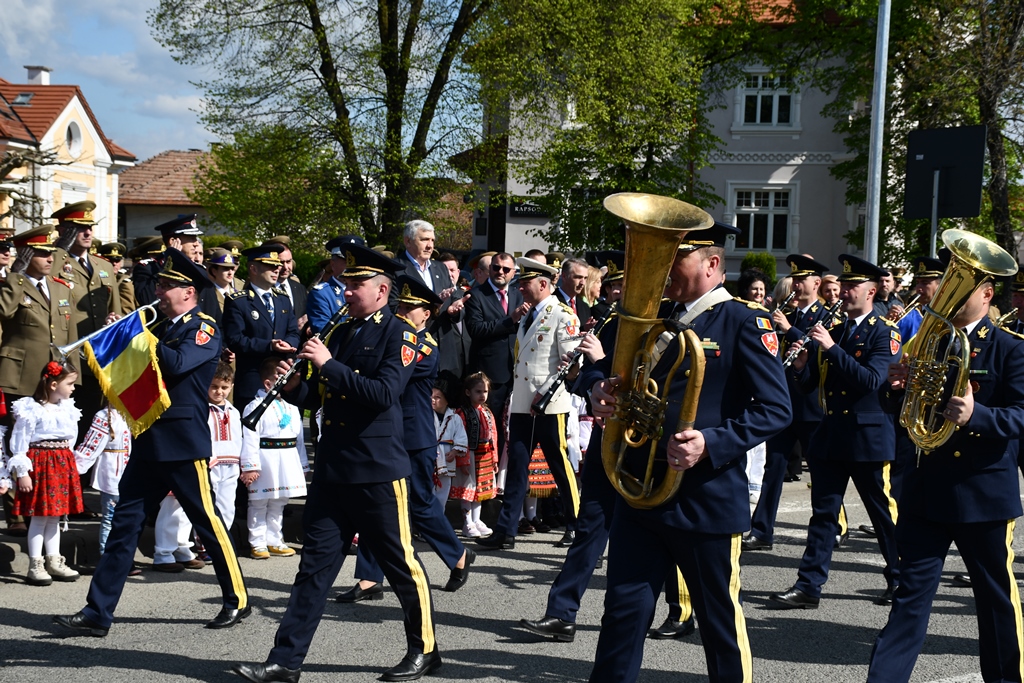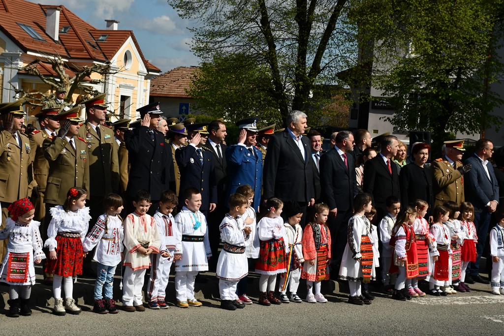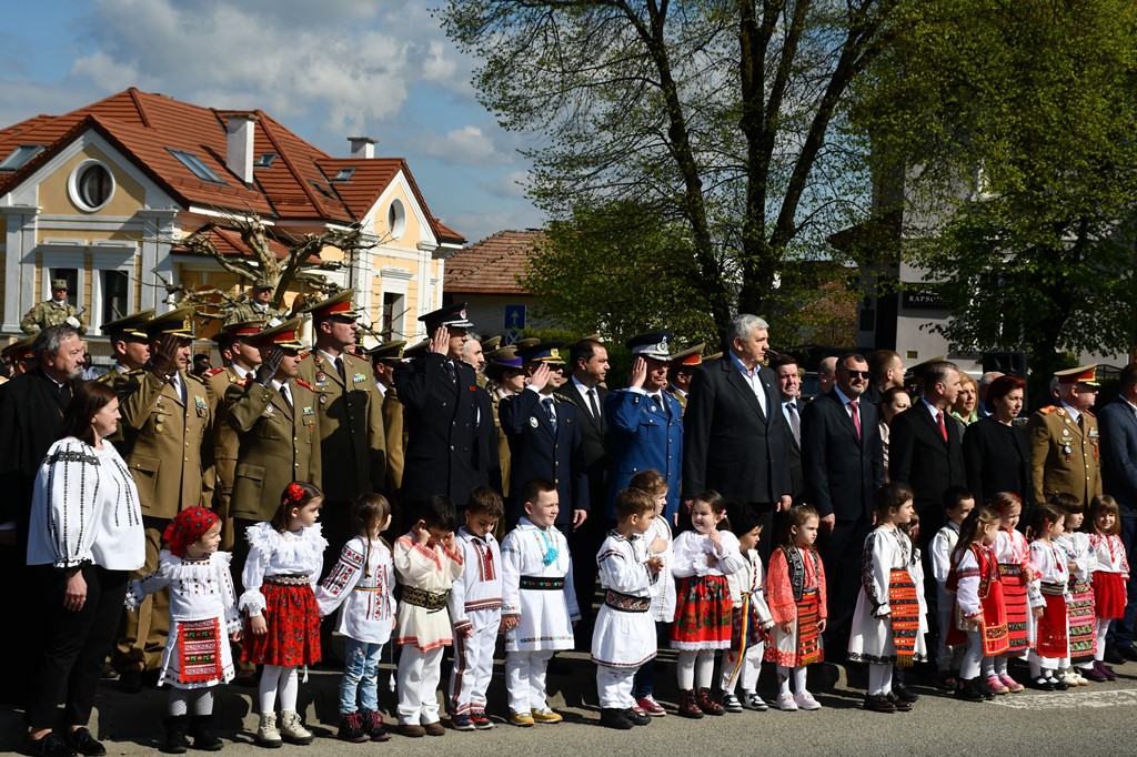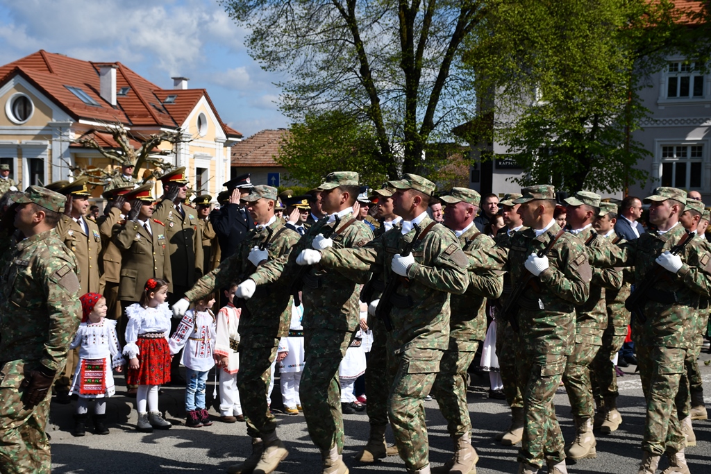 Evenimentul s-a încheiat cu depunerea unor coroane de flori la Monumentul Eroilor și defilarea militarilor prezenți la ceremonie.