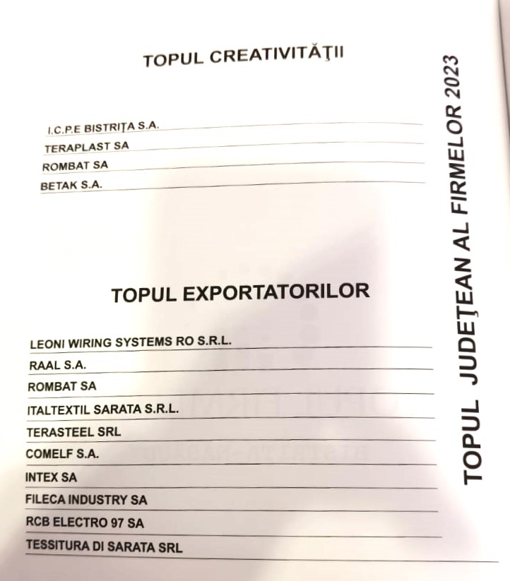 De asemenea, în cadrul galei de decernare a premiilor au fost realizate și două topuri speciale: ”Topul Creativității” și ”Topul Exportatorilor”, fiind premiate 14 companii bistrițene.