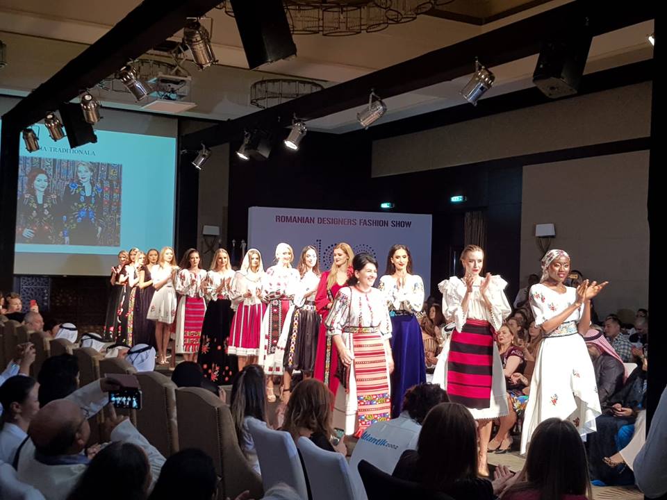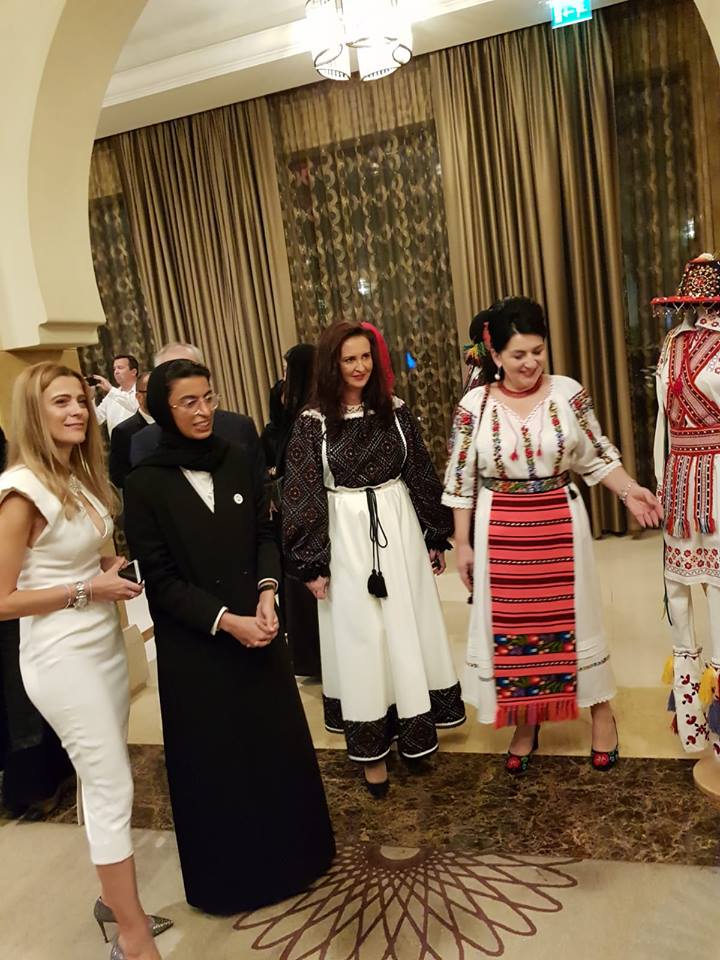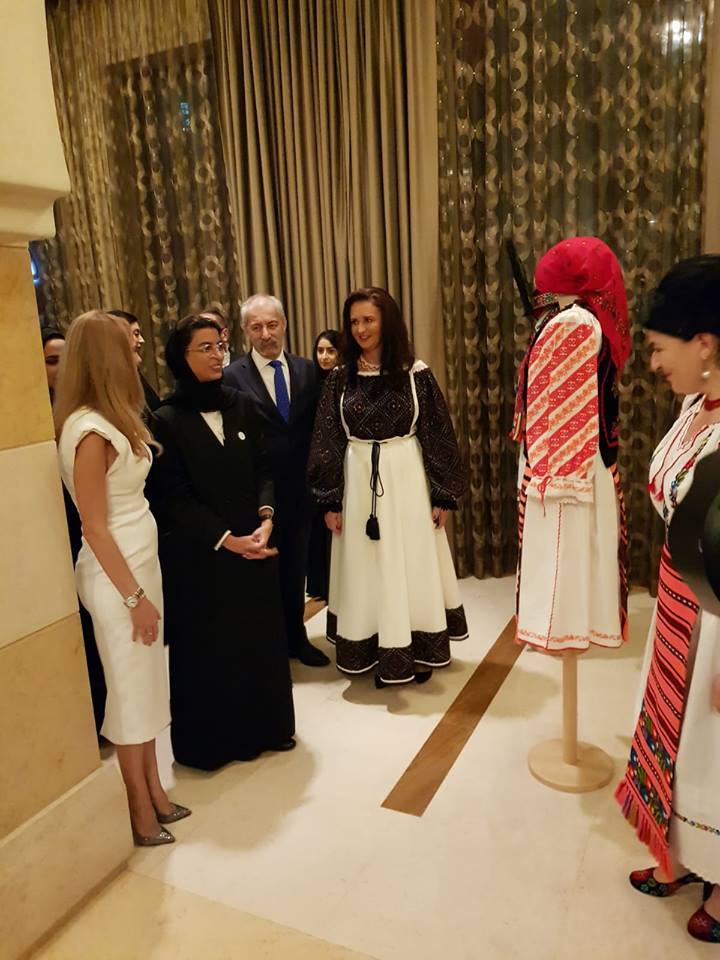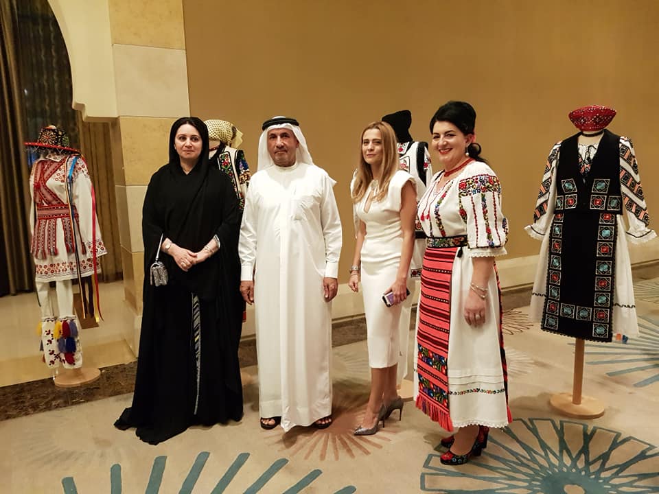 Personalități din viața culturală, politică și artistică din Emiratele Arabe Unite și România, membri ai corpului diplomatic și ai comunității românești au luat parte la prezentarea proiectului „De la Tradiție la Modernism/Inovație”, în cadrul căruia a fost promovat costumul popular românesc ca parte a patrimoniului cultural și ca sursă de inspirație pentru designerii moderni. Evenimentul a inclus o expoziție de costume populare și accesorii, prezentări de modă și momente artistice.