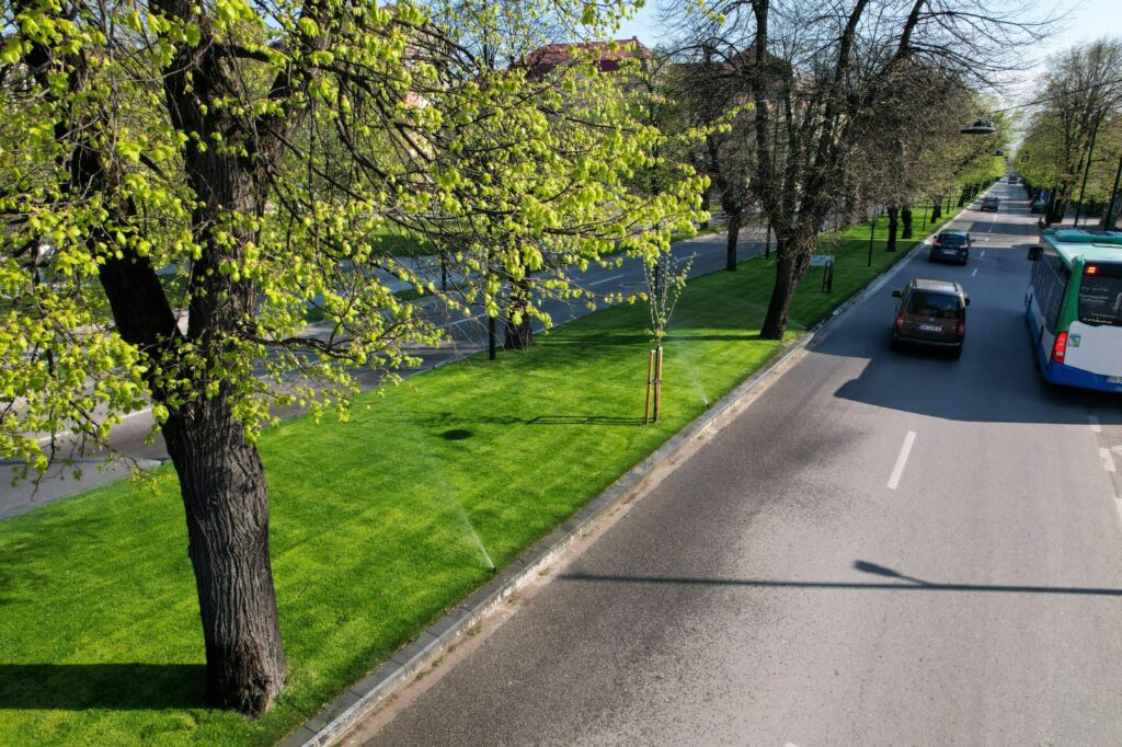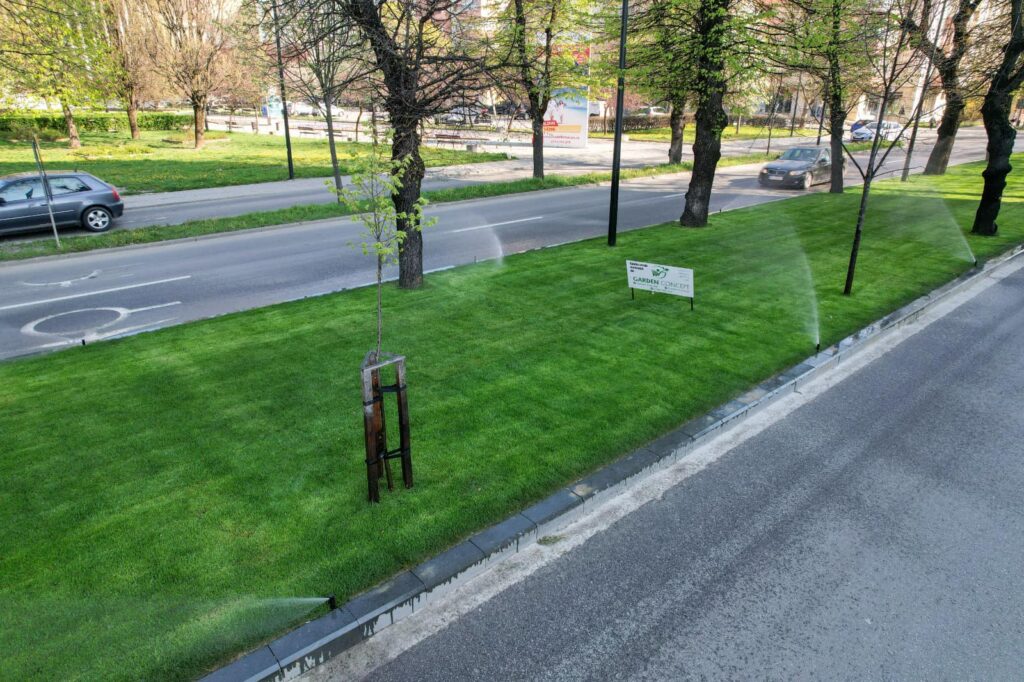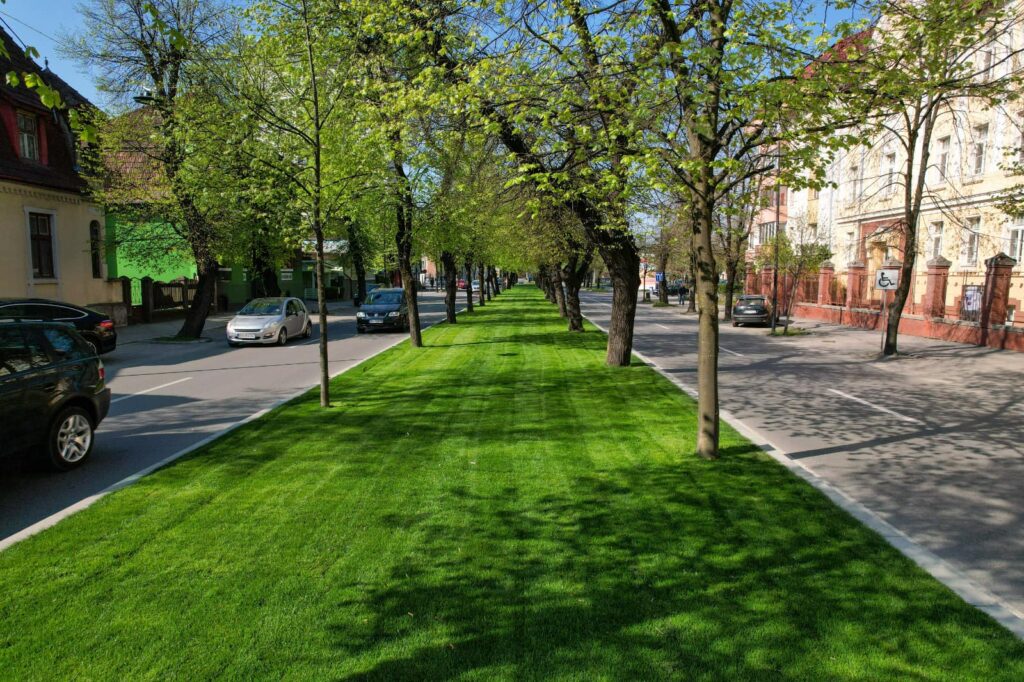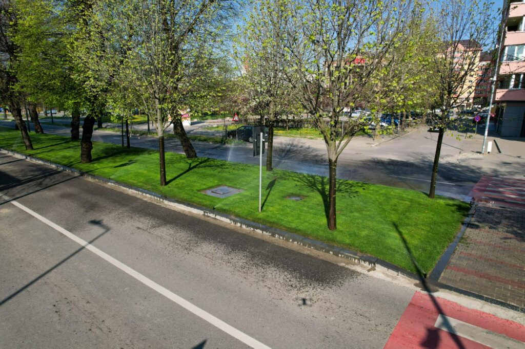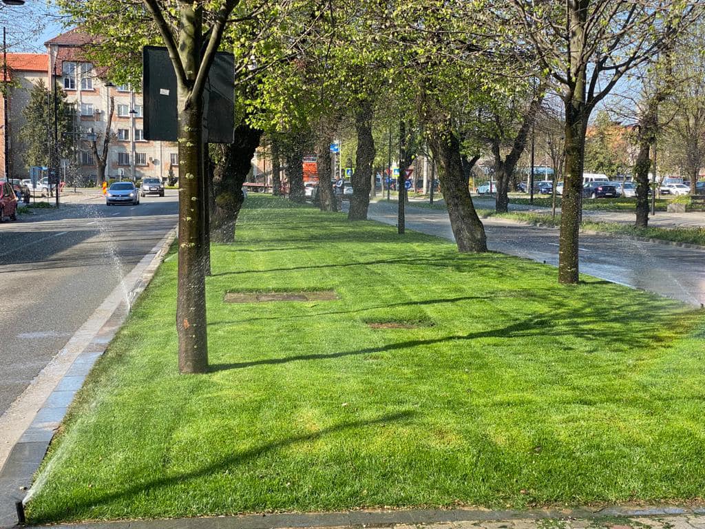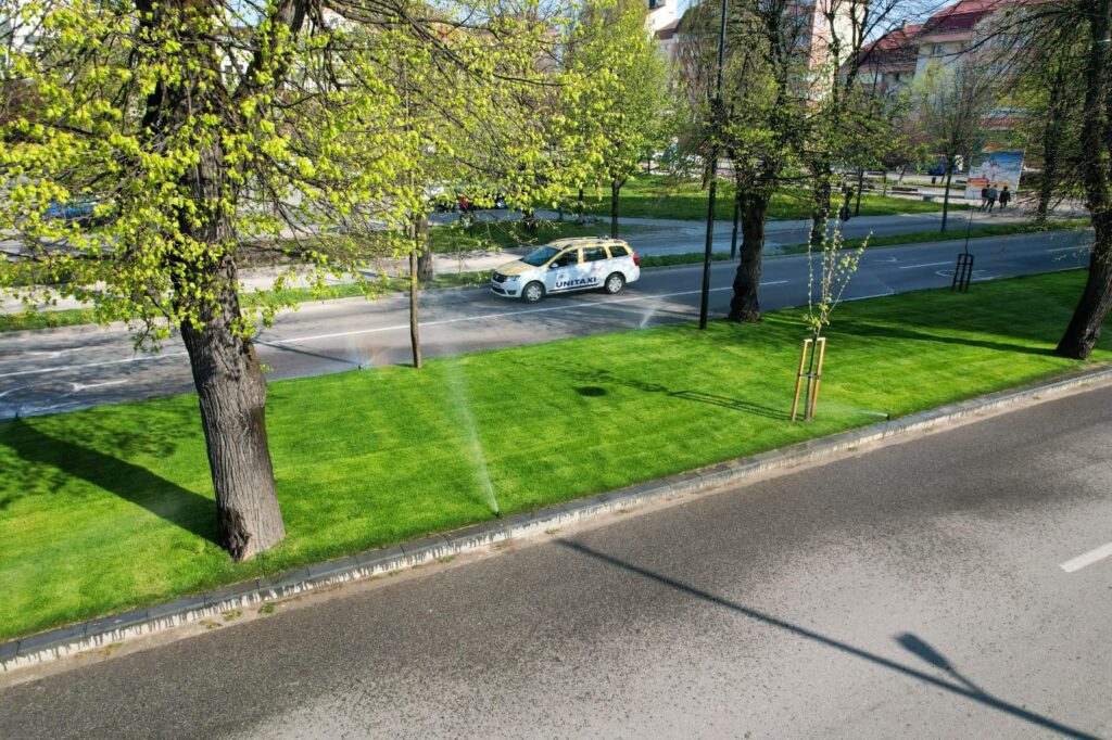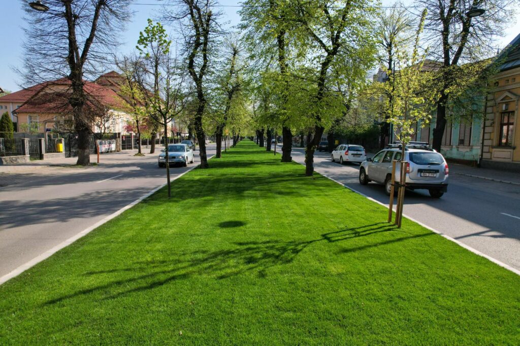 ”Zona verde mediană a bulevardului a fost refăcută integral! Bordurile vechi din beton au fost înlocuite cu borduri din piatră naturală și s-a realizat un sistem modern de irigare sub gazonul de foarte bună calitate! Datorită acestor lucrări, ploaia nu va mai aduce pământul pe șosea, iar aspectul este cu totul deosebit!”, a spus primarul Ioan Turc.