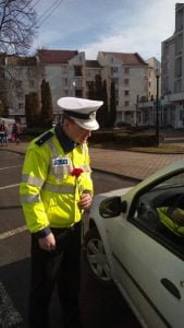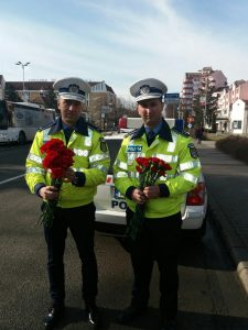 Ca în fiecare an, de Ziua Internațională a Femeii, polițiștii rutieri au oferit flori, însoțite de urări și gânduri bune, participantelor la trafic.