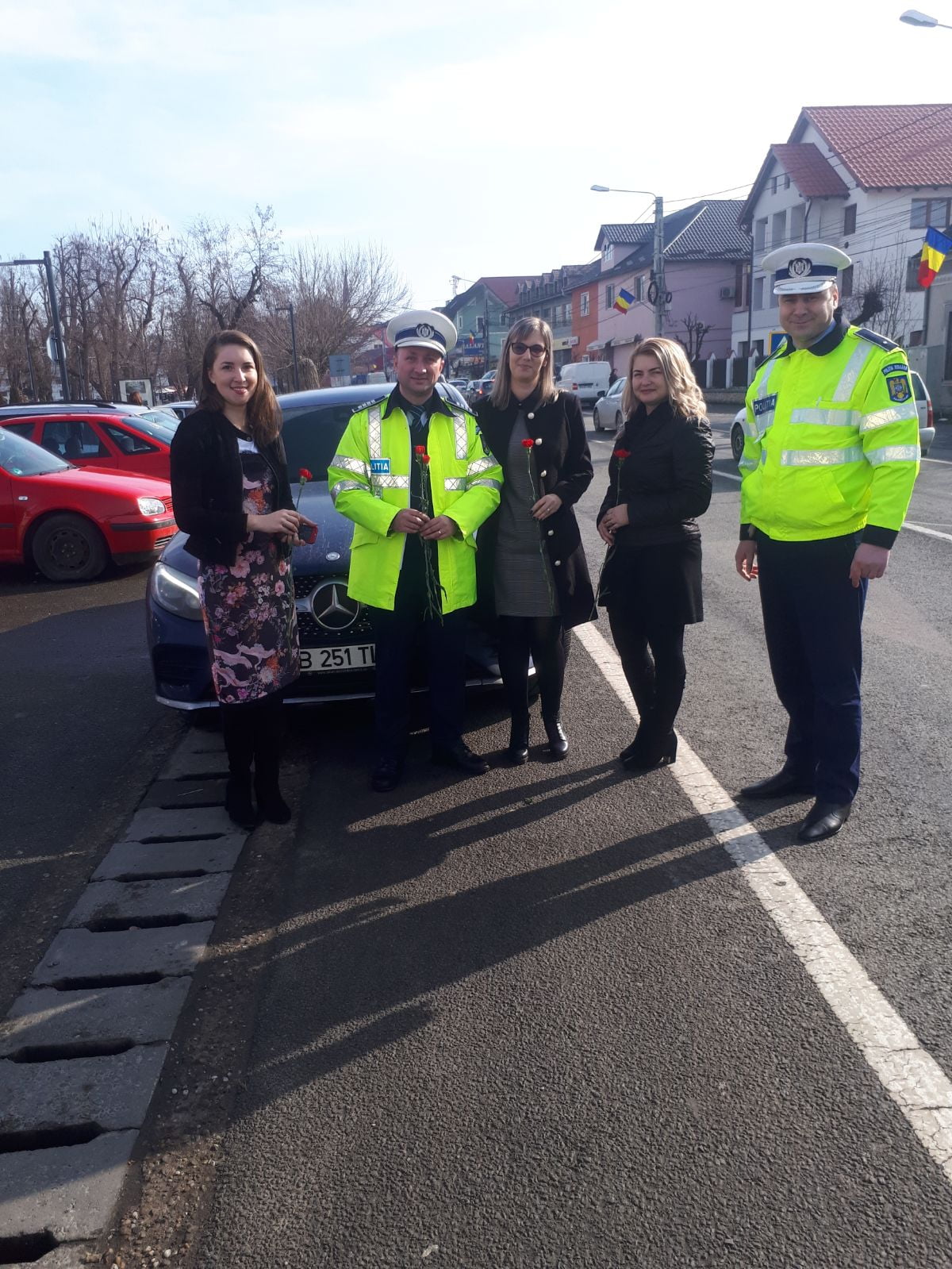 Pe lângă flori, polițiștii le-au transmis gânduri bune, urări și sfaturi preventive, pentru ca ele, doamnele, să nu fie implicate în evenimente neplăcute.