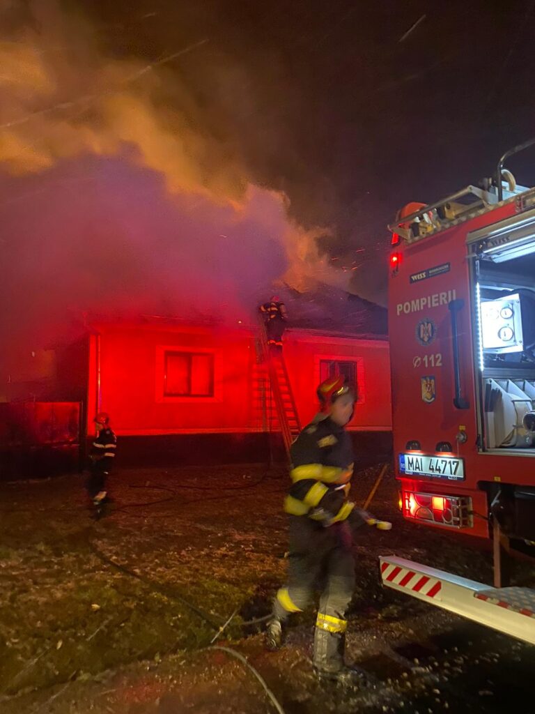 Un puternic incendiu a cuprins, în noaptea de duminică spre luni, o gospodărie din localitatea Livezile, pompierii luptând aproximativ 4 ore cu flăcările.
