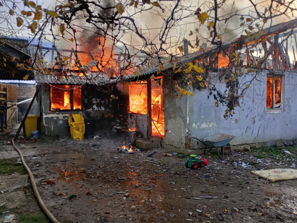 Un puternic incendiu a izbucnit, luni dimineața, la o casă din localitatea Dorolea, pompierii fiind solicitați să intervină pentru a stinge focul. După ce au lichidat incendiul, pompierii au stabilit că acesta ar fi izbucnit după ce un copil s-ar fi jucat cu o brichetă.