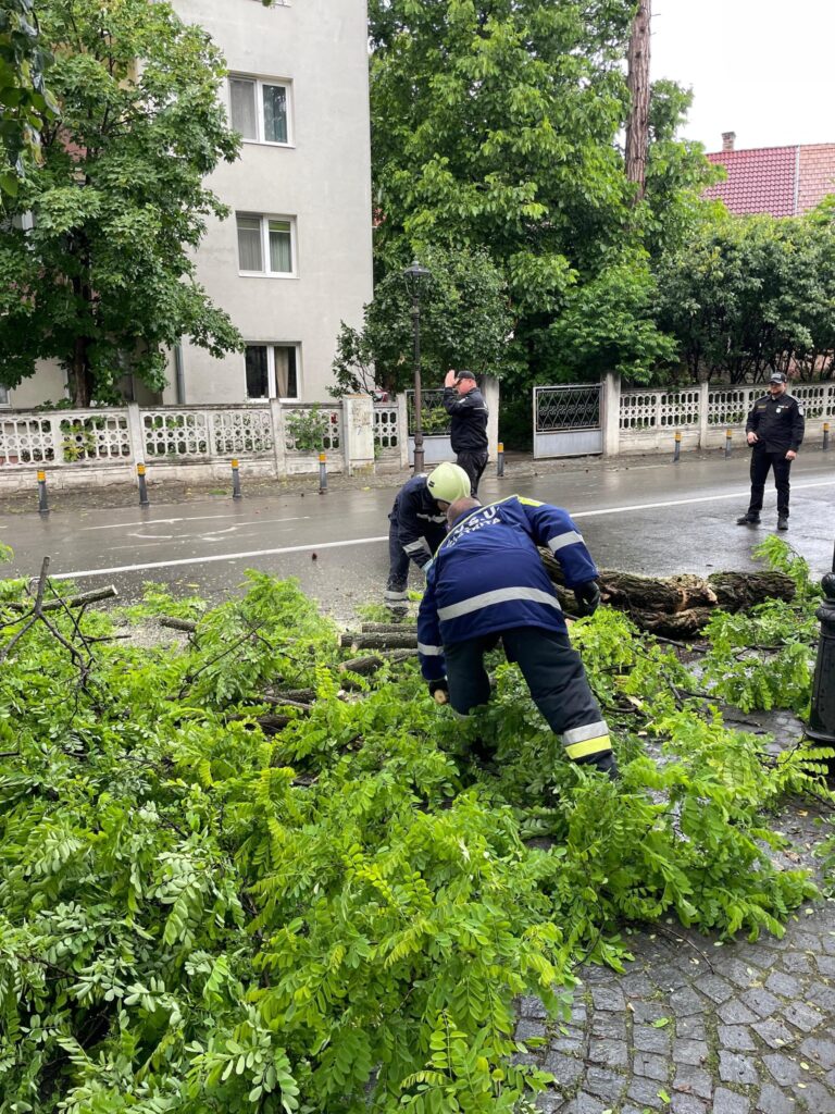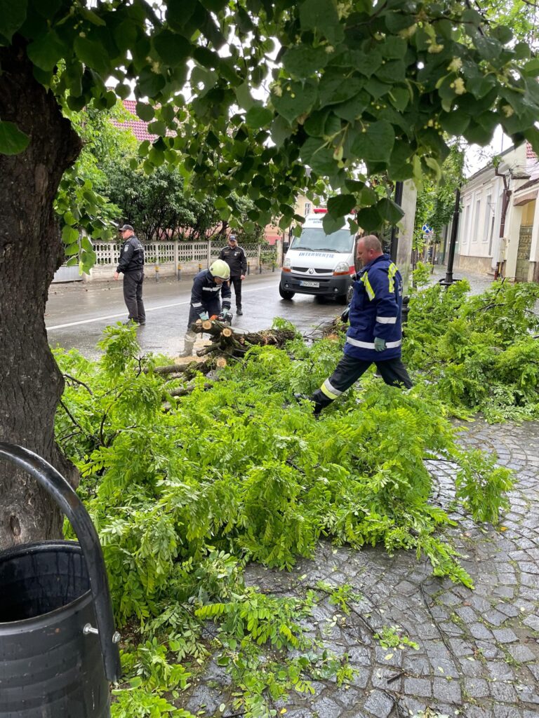 Tot astăzi, din cauza rafalelor de vânt, un copac a fost rupt pe strada Nicolae Titulescu. Echipa SVSU a intervenit de urgență și aici, eliberând carosabilul și trotuarul pentru a restabili condițiile de circulație în siguranță.