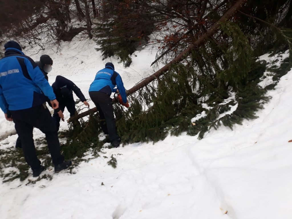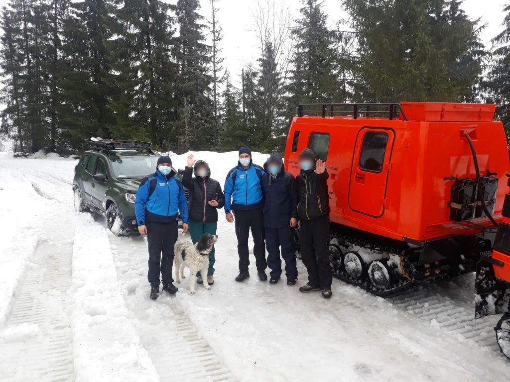 Cei doi turiști au petrecut câteva zile la o cabană din zona Valea Blaznei și intenționau să se întoarcă acasă, însă mașina lor a rămas împotmolită în zăpadă, astfel că au solicitat sprijin din partea autorităților.