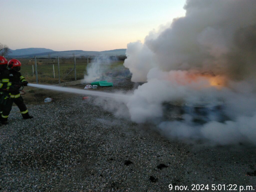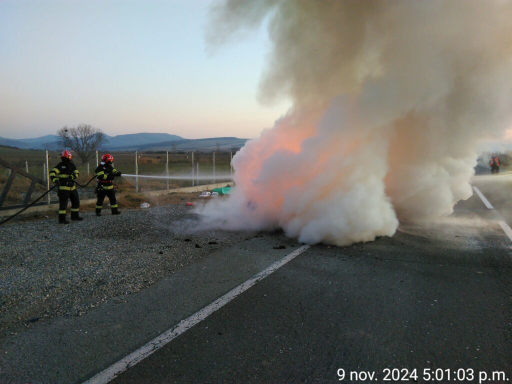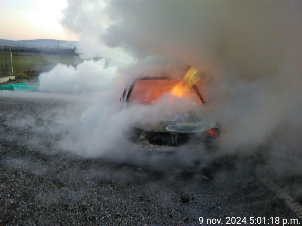 ”În momentul în care echipajele de pompieri au ajuns la locul solicitării, autoturismul ardea generalizat. Din fericire, conducătorul auto a reușit să oprească autoturismul în condiții de siguranță și să iasă din mașină pe cont propriu”, a transmis ISU Bistrița-Năsăud.