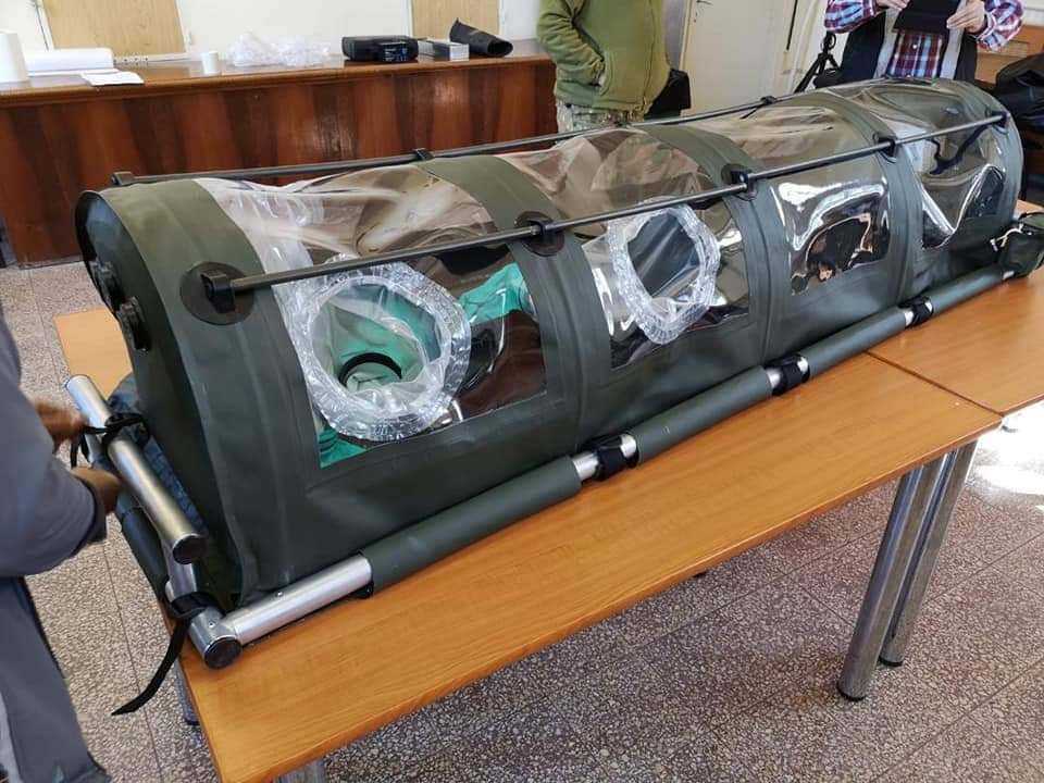 Echipamentul asigură izolarea temporară și transportul în siguranță al personalului suspect sau confirmat a fi contaminat cu agenți biologici, inclusiv SARS-CoV-2, și este dotat cu un sistem de filtro-ventilație cu presiune negativă. Produsul dezvoltat de cercetătorii militari îndeplinește standardele de securitate pentru prevenirea riscurilor de contaminare în zona de izolare și pe traseul de transport al persoanei infestate”, mai arată MApN.