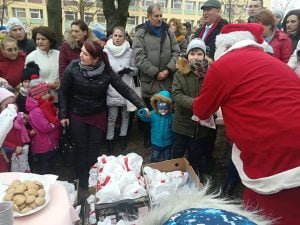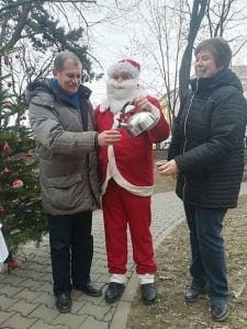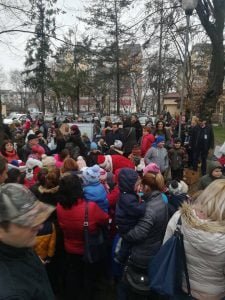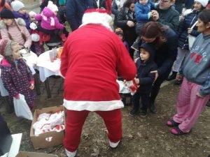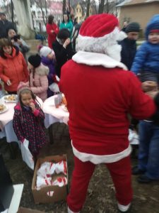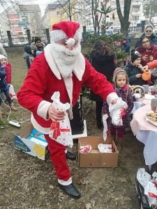 Copiii cu vârsta de până la 10 ani au fost invitați în curtea Spitalului Județean de Urgență Bistrița la o întâlnire cu Moș Crăciun.