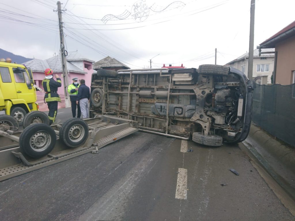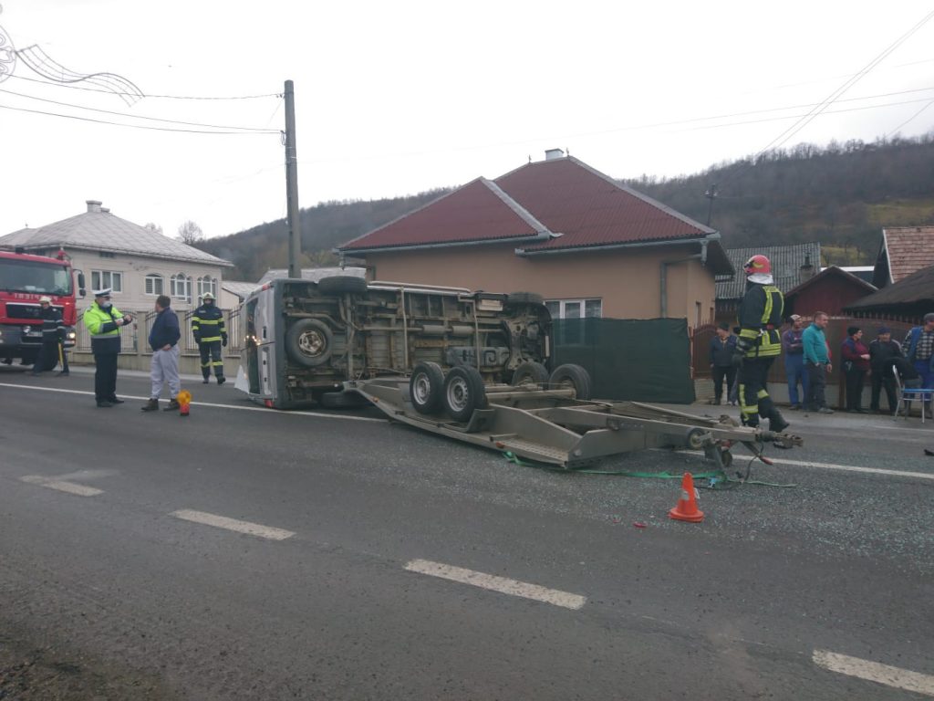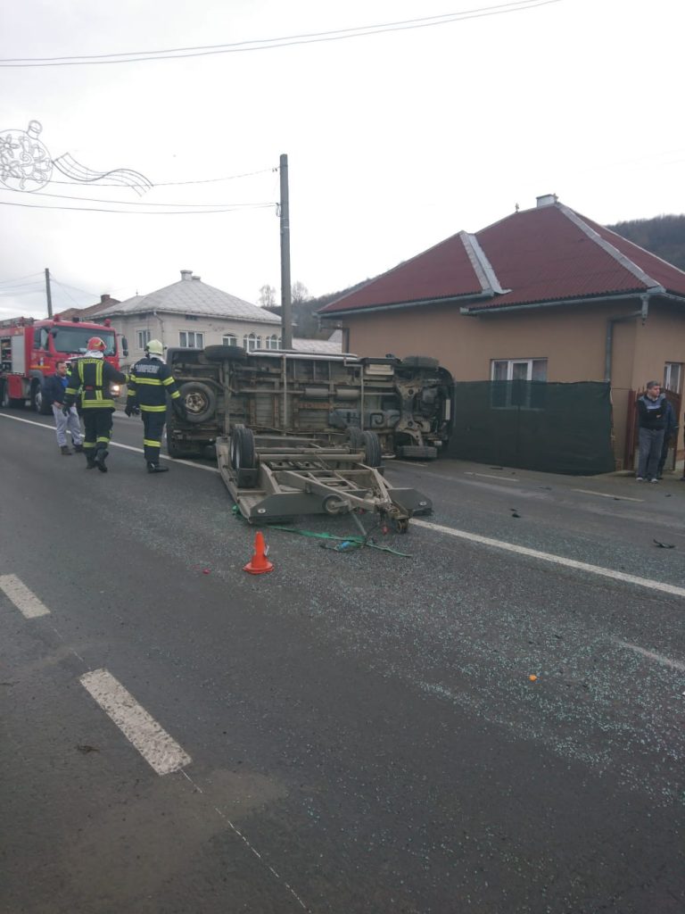 Potrivit Inspectoratului Județean pentru Situații de Urgență Bistrița-Năsăud, două autohevicule au fost implicate în accident, ambele răsturnându-se pe partea carosabilă în urma impactului.