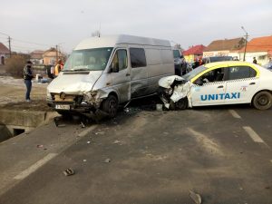 Patru autovehicule au fost implicate, luni dimineața,într-un accident rutier produs pe DN 17, în cartierul Unirea. Un taximetru, o autoutilitară, o autobasculantă și un autoturism au intrat în coliziune.