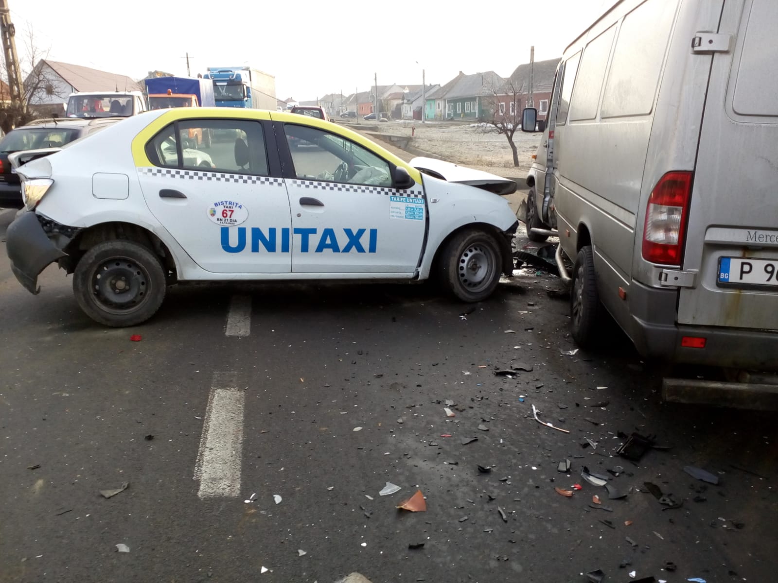 Patru autovehicule au fost implicate, luni dimineața,într-un accident rutier produs pe DN 17, în cartierul Unirea. Un taximetru, o autoutilitară, o autobasculantă și un autoturism au intrat în coliziune.