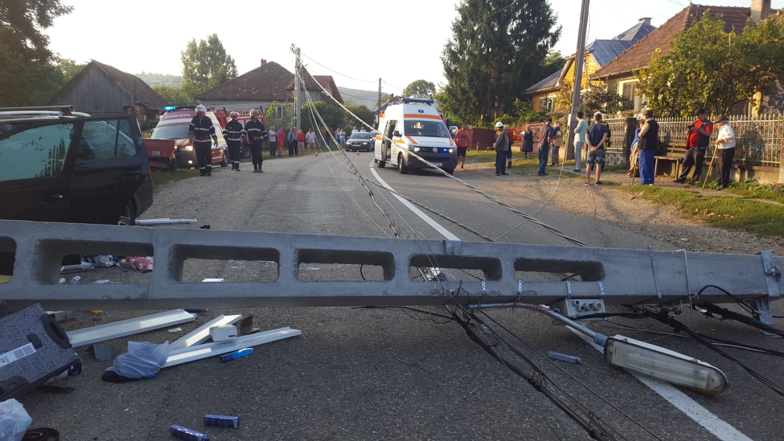 Accidentul s-a produs pe fondul oboselii, șoferul a pierdut controlul volanului și a intrat cu mașina într-un stâlp de electricitate pe care l-a doborât.