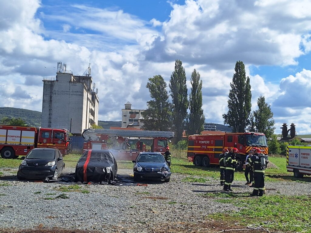Pompieri din mai multe județe ale țării s-au reunit, miercuri, la Bistrița, pentru a lua parte la o demonstrație dedicată gestionării incendiilor la autovehicule, în special la cele electrice.