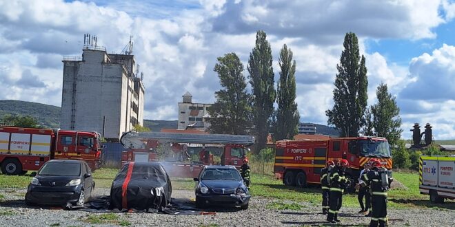 Pompieri din mai multe județe ale țării s-au reunit, miercuri, la Bistrița, pentru a lua parte la o demonstrație dedicată gestionării incendiilor la autovehicule, în special la cele electrice.