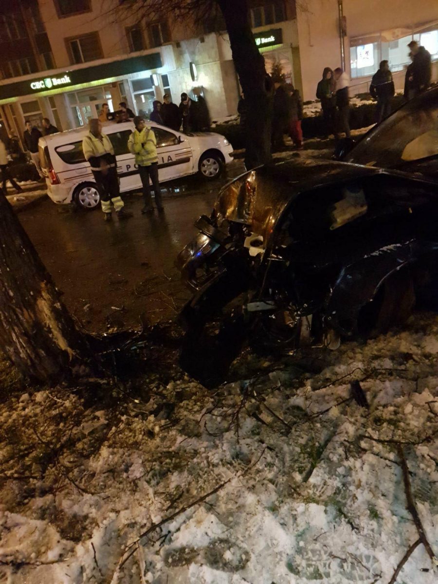 Potrivit polițiștilor care au efectuat cercetări la fața locului, șoferului unui autoturism care circula pe Bulevardul Republicii a încercat să evite un pieton angajat în traversarea străzii prin loc special marcat și a ajuns cu mașina într-un copac de pe mijlocul bulevardului.