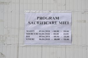 Animalele sunt sacrificate pe loc de către măcelari autorizaţi, care însă sunt nemulţumiţi de faptul că taxa pentru un miel a fost majorată în acest an, ajungând la 10 lei, faţă de 3 lei cât era anul trecut. „Taxa pentru un miel e de 10 lei anul acesta, în vreme ce anul trecut era de doar 3 lei, deci practic s-a triplat. După ce că plătim circa 500 de lei pentru autorizaţie, iar condiţiile sunt cele care se văd” a spus unul dintre măcelarii autorizaţi să sacrifice mieii în piaţa de pe strada Tărpiului.