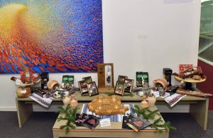 O parte din produsele agroalimentare au fost expuse pe o hartă a României, iluminată cu spoturi, pentru a scoate în evidență locația de proveniență a produselor românești.