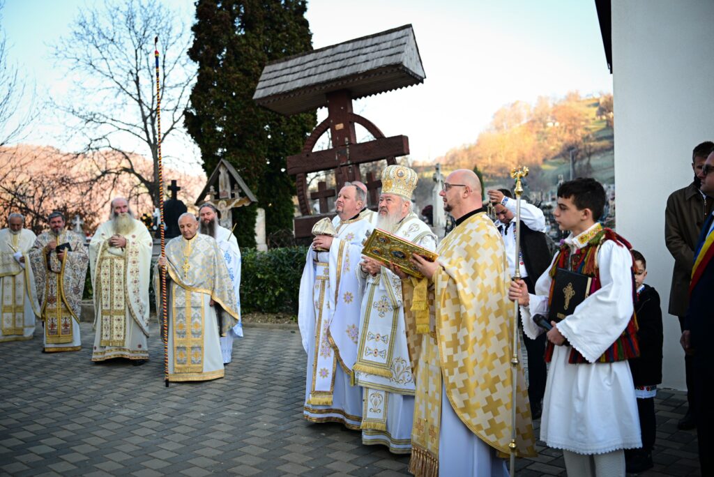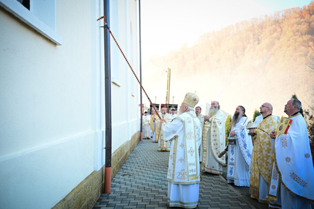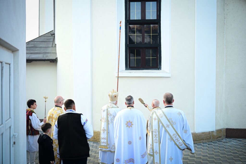 De la ora 8:30, Înaltpreasfinția Sa a săvârșit slujba de resfințire a bisericii parohiale, cu hramul ,,Sfinții Arhangheli Mihail și Gavriil”, edificată între anii 1902-1903. Înfrumusețat și restaurat în ultima perioadă, la interior și exterior, lăcașul de cult a fost binecuvântat prin stropire cu apă sfinţită şi prin ungere cu Sfântul și Marele Mir, iar în piciorul Sfintei Mese au fost așezate moaște de mucenici. De asemenea, ierarhul a sfințit și noul clopot, care urmează să fie montat în turnul-clopotniță al bisericii, alături de celelalte două clopote existente.