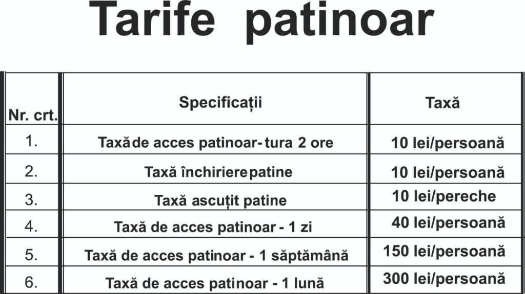 În perioada următoare, patinoarul va funcționa după următorul program: