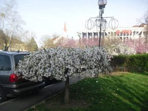 Caișii ornamentali din Piața Mihai Eminescu din Bistrița au înflorit ”mai frumos ca niciodată, pentru a ne încânta privirile și sufletul” spune președintele Organizației Municipale a Partidului Verde Bistrița, Marius Bălan, care îi invită pe bistrițeni ”să poposească pe băncile din parc și să îi admire”.
