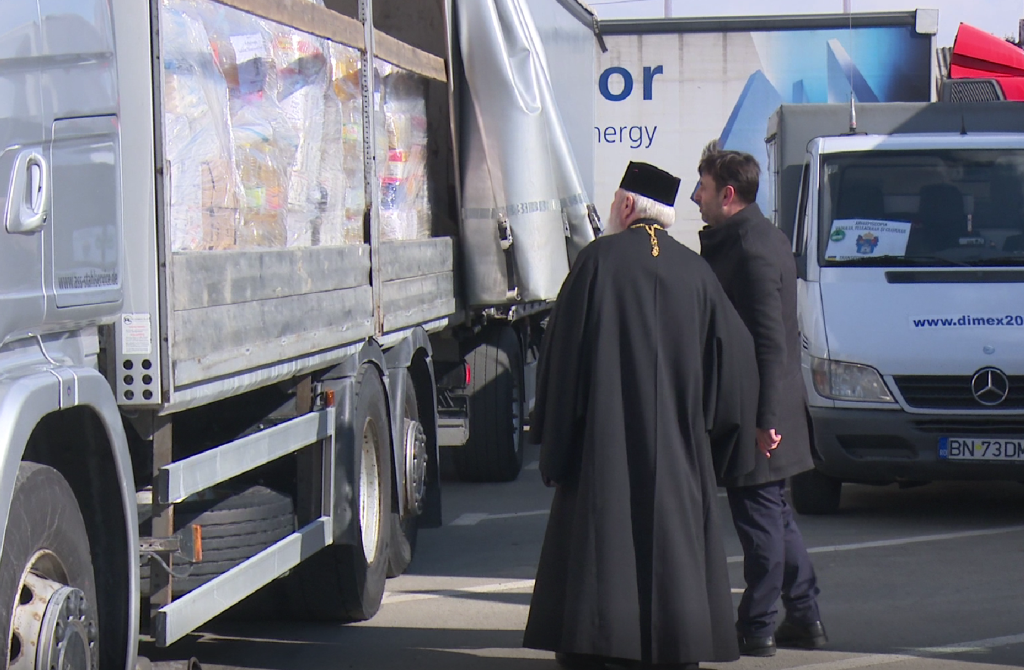 Joi, în parcarea magazinului Selgros din municipiul Bistrița, în prezența Înaltpreasfințitului Părinte Arhiepiscop și Mitropolit Andrei, s-a format un convoi umanitar alcătuit din autovehicule de mare tonaj și autoutilitare încărcate cu produsele colectate în cadrul acțiunii umanitare.