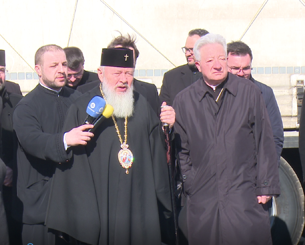 ”În situația ce s-a creat cu războiul din Ucraina, credincioșii noștri, preoții noștri, protopopii noștri, administrația noastră au răspuns creștinește. Sfântul Pavel zice, în a doua Epistolă către Corinteni, în capitolul 9, că noi trebuie să fim solidari în asemenea situații și, de data aceasta, suntem solidari cu frații noștri din Ucraina, printre care se află și români. (…) 150 de tone de alimente, plus medicamentele adunate, vor duce un pic de mângâiere pentru ucrainenii care suferă în acest război și nădăjduim ca, foarte repede, cei ce sunt în măsură să facă lucrul acesta, să îl facă, să facă pace, să sisteze conflictul armat și apoi, pe cale diplomatică, să găsească rezolvare la problemele care sunt nerezolvate. Dăm slavă lui Dumnezeu pentru ceea ce se întâmplă astăzi, aici la Bistrița, și pentru convoiul destul de bogat care va pleca înspre frații noștri din Ucraina. Mulțumim preoților și tuturor celor ce ne-au sprijinit ca să putem pune la cale acest convoi de ajutoare care va pleca înspre cei necăjiți”, a spus Înaltpreasfințitul Părinte Arhiepiscop și Mitropolit Andrei.