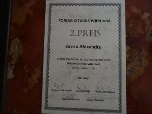 În perioada 23 -29 august, la Viena a avut loc una din cele mai importante competiţii din lume „Forum Gitarre Wien” – Austria. A fost a 28-a ediţie a Festivalului Internaţional de chitara clasică, fără limită de vârstă, şi a 23-a editie a Competiţiei Internaţionale a tinerilor până la 18 ani, concurs care a reunit elita chitariştilor din întreaga lume (Germania, Franţa, China, Italia, Austria, Polonia, Grecia, Turcia, Coreea de Sud, Slovenia, Cehia, Ungaria, România).