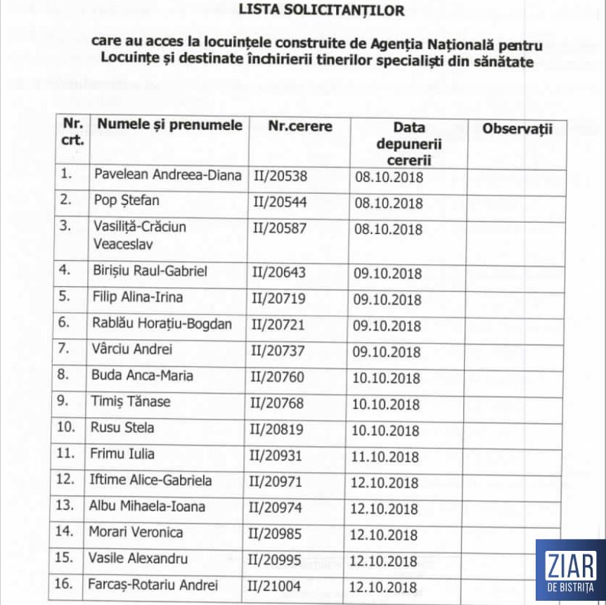 În ceea ce privește repartizarea unei astfel de locuințe, potrivit managerului Spitalului Județean de Urgență Bistrița, Gabriel Lazany, criteriul principal de care s-a ținut cont a fost acela ca solicitantul să fie angajat în sistemul de sănătate din municipiul Bistrița. În plus, solicitații nu au avut voie să dețină o altă locuință în proprietate în oraș.