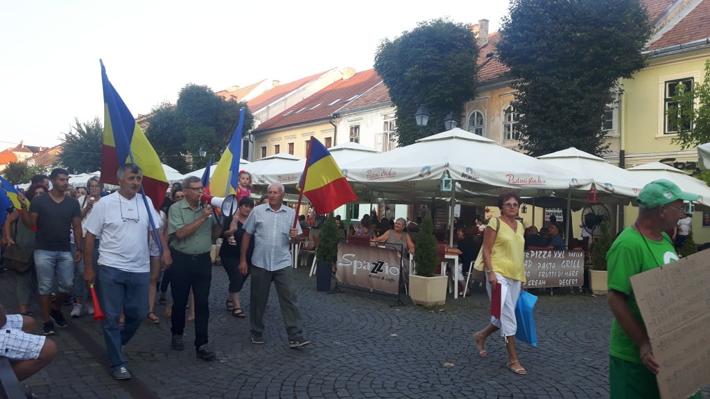 Oamenii au afișat pancarte și au aplaudat la discursurile lui Chereji și a lui Marius Bălan, care i-au ironizat pe PSD-iștii aflați la conducerea țării. Protestatarii din Bistrița i-au felicitat pe cei veniți din Spania, Italia, Anglia petru curajul și implicarea de care au dat dovadă! Ecologistul Marius Bălan a amintit oamenilor de Revoluția din Decembrie 89 și le-a cerut să aibă curaj în fața sistemului.