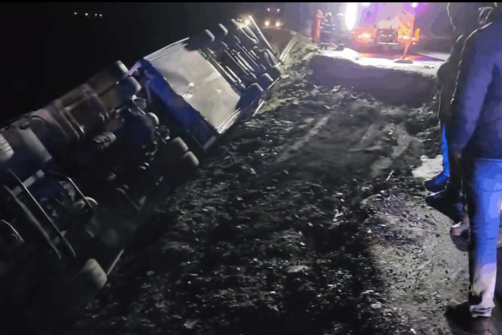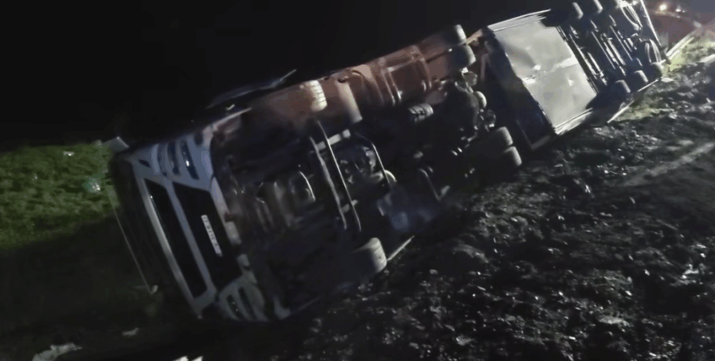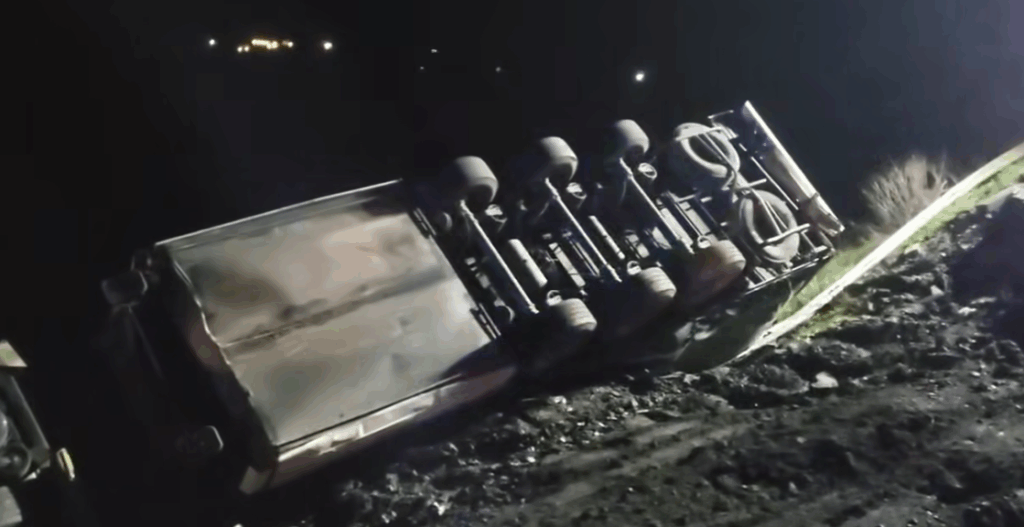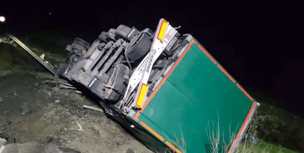 Potrivit Inspectoratului de Poliție Județean Bistrița-Năsăud, autotrenul s-a răsturnat în afara părții carosabile.