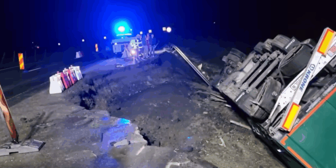 ”Avem în acea zonă o alunecare de teren. Problemele au început în urmă cu doi ani, dar de anul trecut efectiv s-a dus la vale o porțiune de drum de circa 50 de metri, o bandă de drum practic. În acea zonă, sectorul de drum este pe trei benzi, avem și o bandă de urcare pentru vehiculele lente. Acum circulația e restricționată pe două benzi. Din punctul nostru de vedere, zona era semnalizată, noi am pus balize, am impus restricții de viteză de 40 km/h, inclusiv lumini intermitente ca să se vadă. Sunt panouri mari de semnalizare care avertizează de la 400 de metri, avem intermediar. Nu știm exact cum s-a întâmplat accidentul, Poliția face cercetări. Șoferul știu că nu a pățit nimic, iar RAR-ul urmează să citească diagrama, să vadă cu ce viteza circula. TIR-ul era încărcat cu apă minerală. Într-adevăr e un sector periculos acolo, dar facem demersuri pentru a interveni în acea zonă. Sunt necesare lucrări de consolidare. Acum se lucrează la studiul de fezabilitate și la o expertiză tehnică pentru zona respectivă. Suntem la stadiul de obținere a avizului de la Mediu. Sunt necesare lucrări ample, de consolidare pentru că se duce versantul la vale. O să ne gândim să mărim gradul de semnalizare în zonă, poate vom pune chiar și parapet New Jersey ca să blocăm banda, dar și așa pot să apară alte probleme pentru că unii șoferi vin cu viteză și pot intra în parapet. O să discutăm și cu Poliția și o să vedem ce putem face în plus față de ce deja am făcut pentru acel sector de drum”, a spus Grigore Vlad.