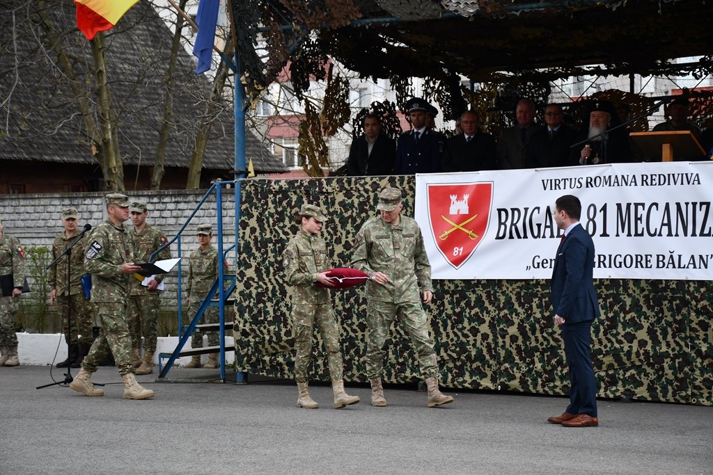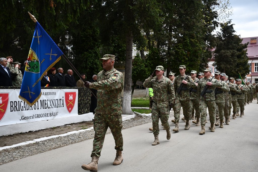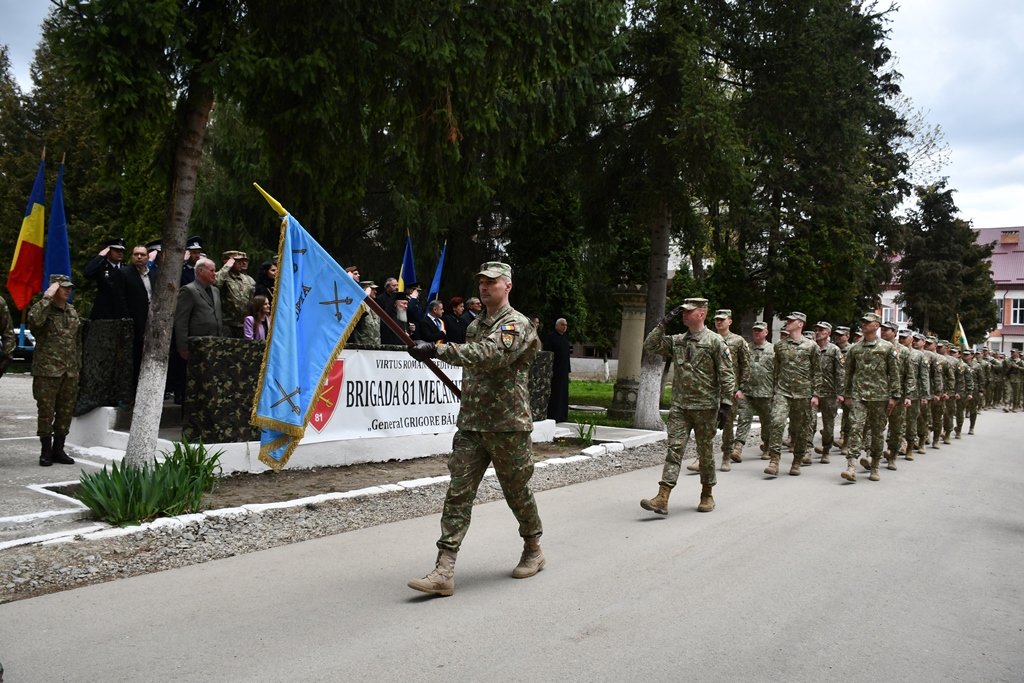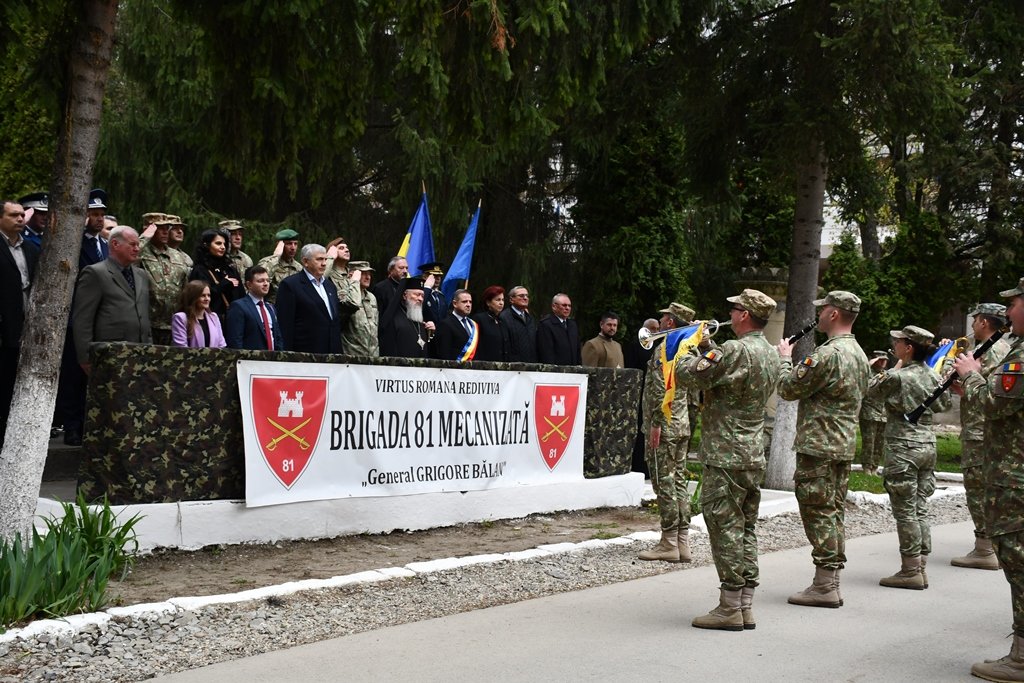 Ceremonia s-a încheiat cu defilarea efectivelor de militari din cadrul Brigăzii 81 Mecanizată ”General Grigore Bălan”.
