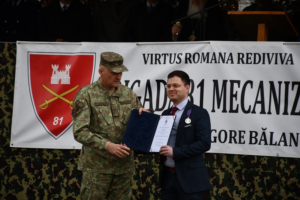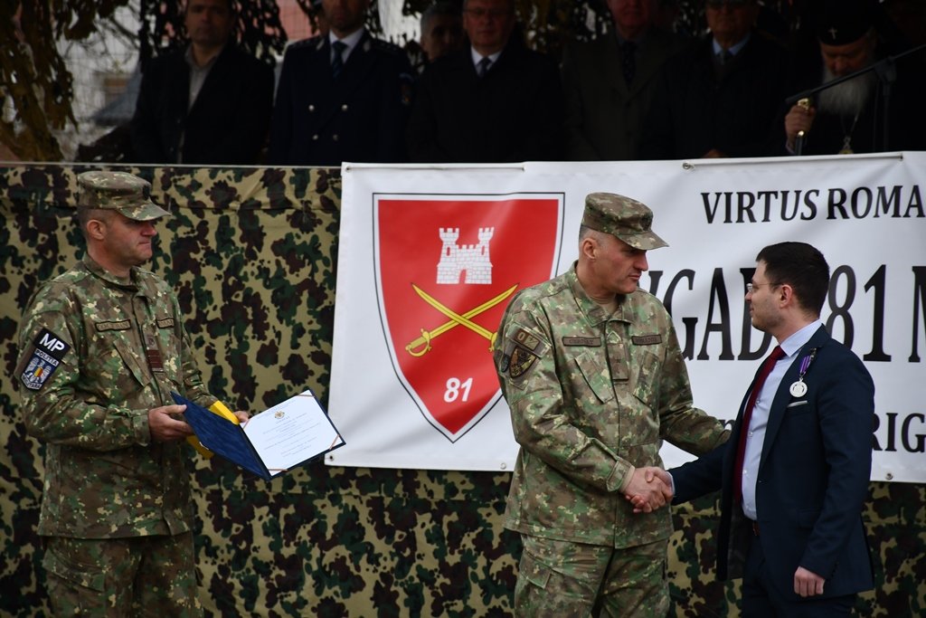 Ulterior, generalul de brigadă Bogdan Cernat, comandantul Diviziei 4 Infanterie ”Gemina”, a dat citire mesajului ministrului Apărării Naționale cu ocazia Zilei Forțelor Terestre, după care a acordat emblema de merit ”Partener pentru Apărare clasa a II-a” doctorului Cristian Mureșan, fondator al Fundației Villas, în semn de apreciere pentru sprijinul său în susținerea activității lotului Invictus. A urmat un moment în care au fost acordate distincții personalului Brigăzii 81 Mecanizată ”General Grigore Bălan”, pentru îndeplinirea ireproșabilă a misiunilor și obținerea de rezultate meritorii în procesul instruirii.