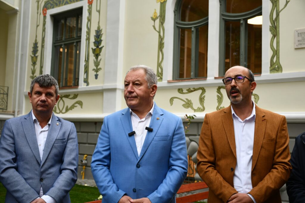 ”Recepționăm astăzi un obiectiv care cred că va deveni și un punct de atracție turistică pentru municipiul Bistrița și județul nostru. Această clădire a fost construită în 1912, are peste 100 de ani. Chiar dacă momentan nu este clădire monument-istoric, noi vom începe să facem demersuri pentru a o include pe lista monumentelor-istorice. (…) Au existat foarte mulți oameni de cultură care au dorit să doneze Bibliotecii Județene ”George Coșbuc” carte veche, manuscrise și opere de artă valoroase. Astfel, împreună cu colegii mei din Consiliul Județean, am luat această decizie de a căuta altă soluție pentru Casa Corpului Didactic care își desfășura activitatea aici și de a reabilita această clădiră foarte frumoasă, care la acea vreme se afla în avansat stadiu de degradare. Am căutat soluții de finanțare externă, dar nu am găsit și în cele din urmă am luat decizia de a finanța această investiție din bugetul propriu și cred că am făcut un lucru bun. Astăzi avem în spate o bijuterie arhitecturală și ne-am străduit, împreună cu specialiștii, să facem reabilitarea cât mai apropiată de varianta inițială a clădirii. Clădirea a fost restaurată și adusă cât mai aproape de aspectul original în ceea ce privește elementele decorative, picturile de pe suprafața fațadei, dar și coloristica pastelată recomandată în urma studiului stilistic și istoric. Sunt foarte fericit că putem reda publicului această clădire foarte importantă în care, în perioada 1924 – 1929, a trăit și fratele marelui poet Mihai Eminescu – Matei Eminescu”, a declarat Emil Radu Moldovan.