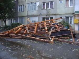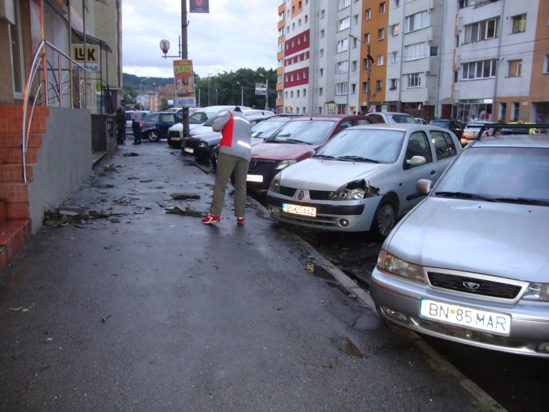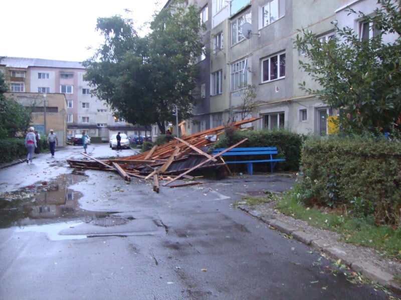 Furtuna din această seară a făcut ravagii în întreg orașul! Acoperișurile mai multor blocuri au fost smulse de vântul puternic și bucăți mari au căzut peste mașinile parcate. Probleme au fost în zona blocurilor cu 10 etaje din întreg orașul: la Lamă, la Han, la Big, la Gară și pe Buevardul Independenței! Furtuna a smuls țigle întregi, grinzi de mari dimensiuni, bucăți de tablă și internit.