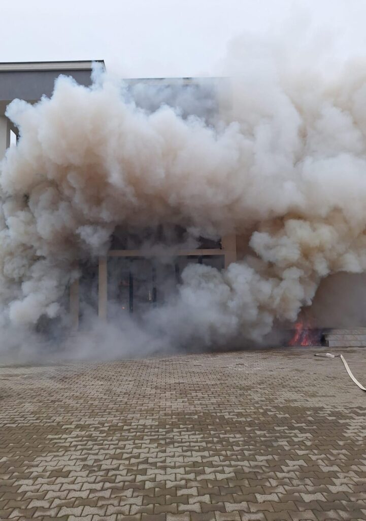 ”Incendiul a fost localizat, se manifesta cu degajare mare de fum la subsolul imobilului regim de înălțime subsol, parter plus doua etaje, pe suprafață de aproximativ 200 mp. Din primele date, operatorul economic nu era pus în funcțiune la momentul izbucnirii incendiului. Din fericire, nu au fost înregistrate victime. Parterul și etajele superioare au fost protejate”, a transmis ISU Bistrița-Năsăud.