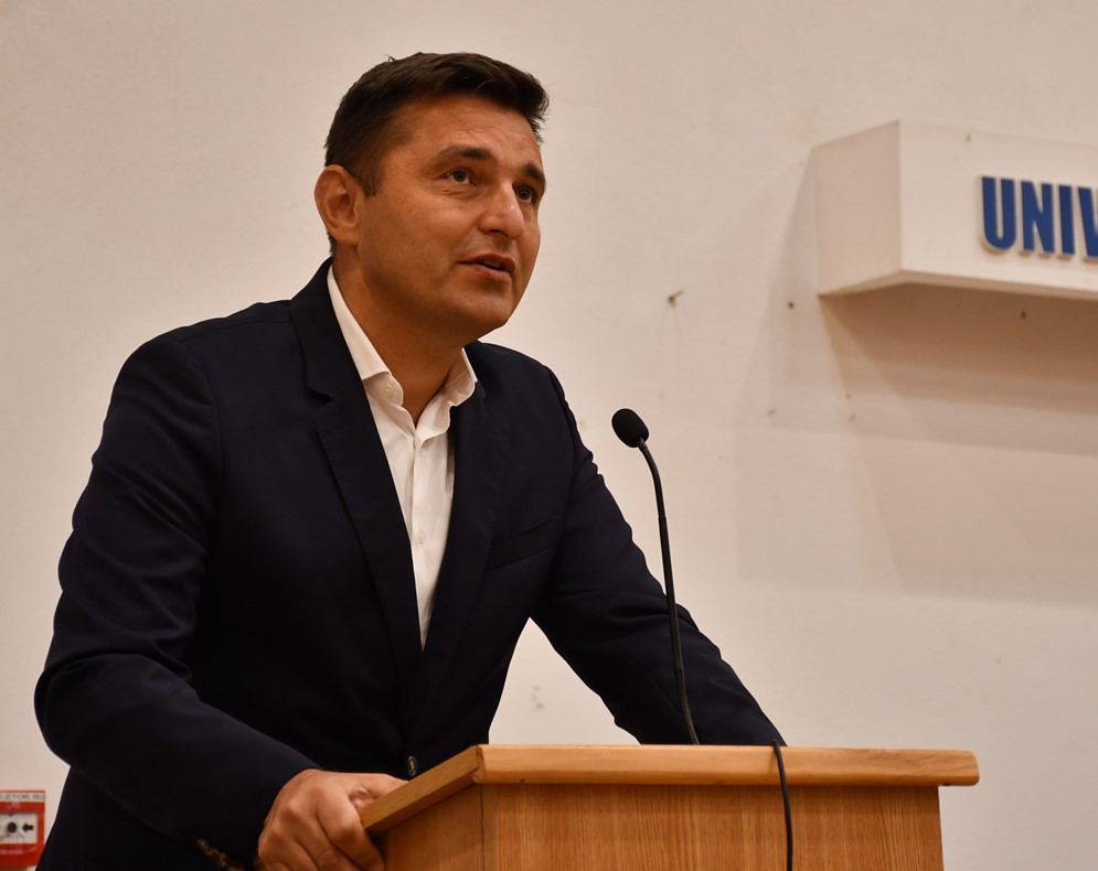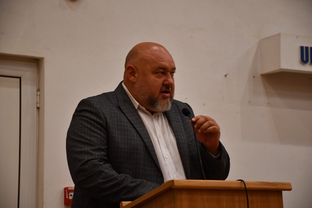 ”Astăzi deschidem, în mod oficial, anul universitar 2025–2026 la Extensia Bistrița a Universității „Babeș-Bolyai” din Cluj-Napoca. În primul rând, vreau să vă transmit mesajul rectoratului, care ne dorește, în ciuda dificultăților, un an universitar bun, un început bun și, să sperăm, un final sub aceleași auspicii. Ca director de extensie, trebuie să subliniez că, deși nu am pornit foarte optimiști admiterea din vară, mă bucur să văd amfiteatrul atât de plin. Trebuie să precizez și că, dacă în unele locuri numărul de studenți a scăzut, la Extensia Bistrița efectivul a crescut cu aproximativ 20 de persoane. (…) Să aveți un an universitar excepțional!”, a spus Bartha Andras, directorul Extensiei Bistrița a Universității Babeș-Bolyai din Cluj-Napoca.