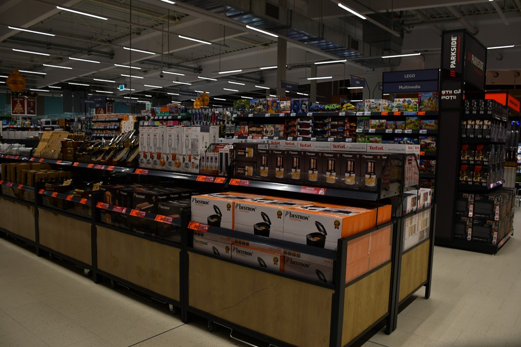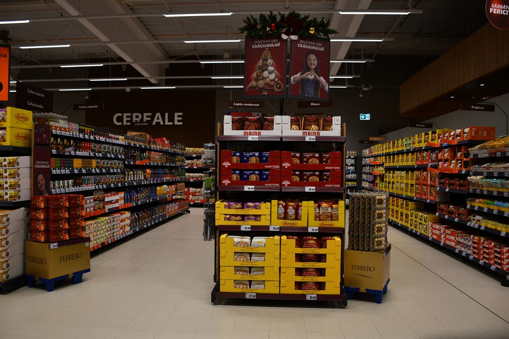 Clienții vor găsi în magazin o varietate de produse pentru toate gusturile, acesta fiind dotat cu raion de legume și fructe proaspete, vitrină cu servire asistată cu o lungime de peste 17 metri, brutărie, raion de produse congelate, alimente de bază, dulciuri, băuturi, produse nealimentare și drogherie.