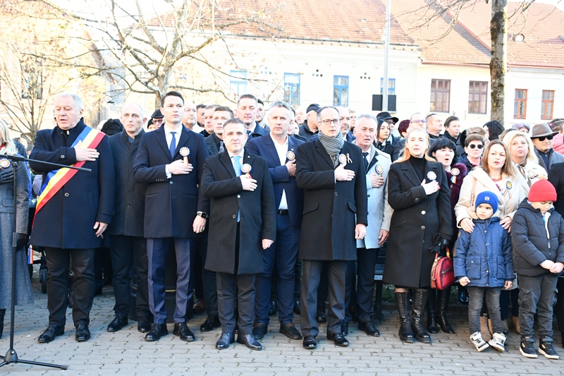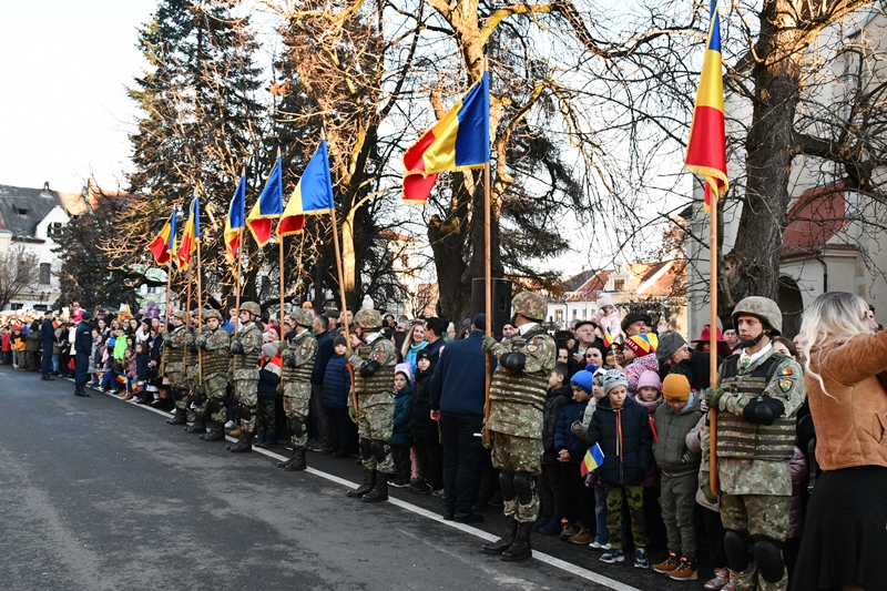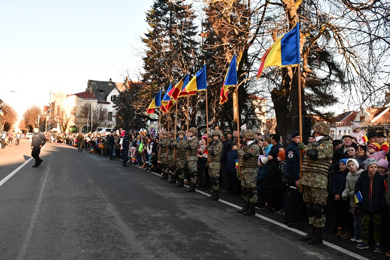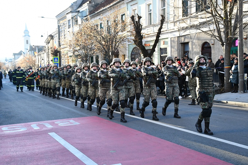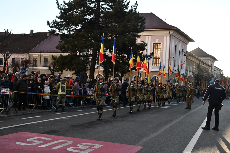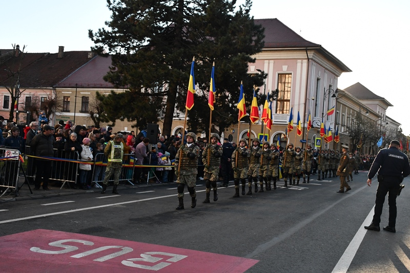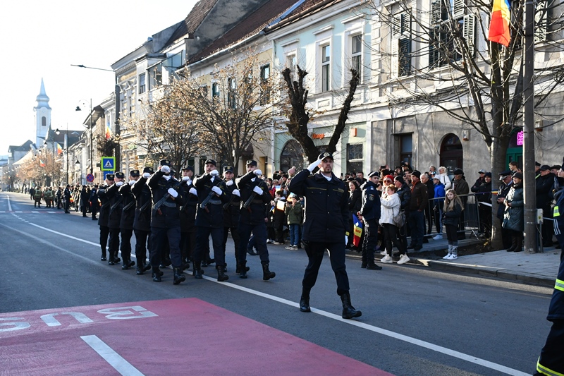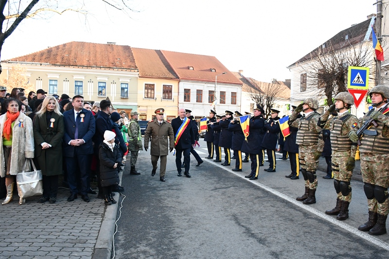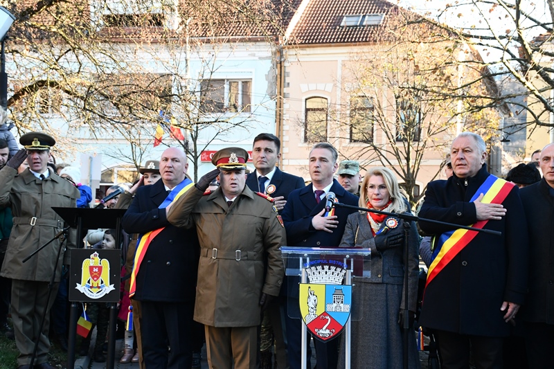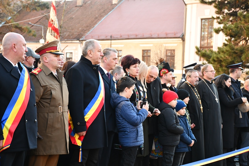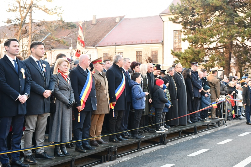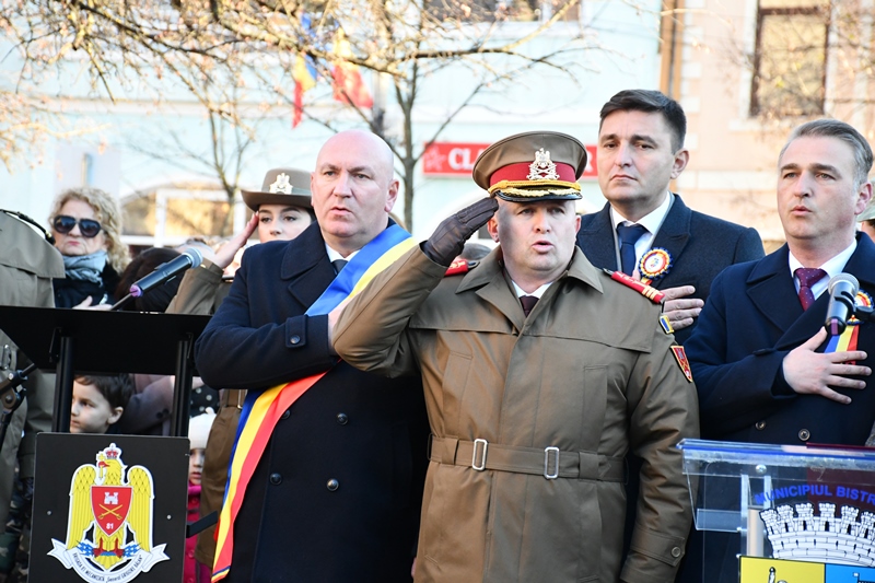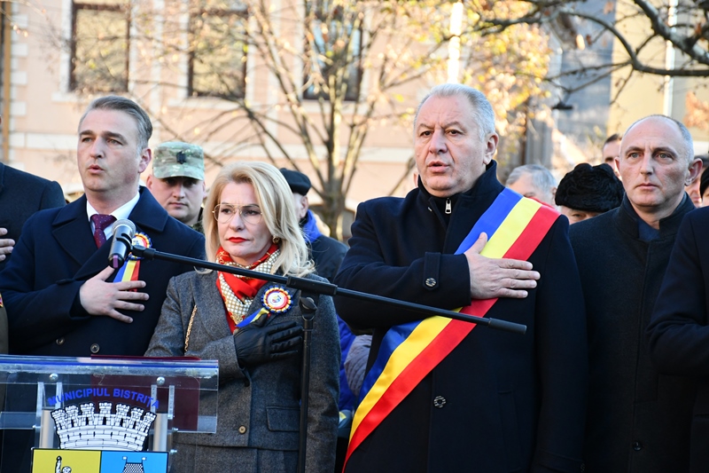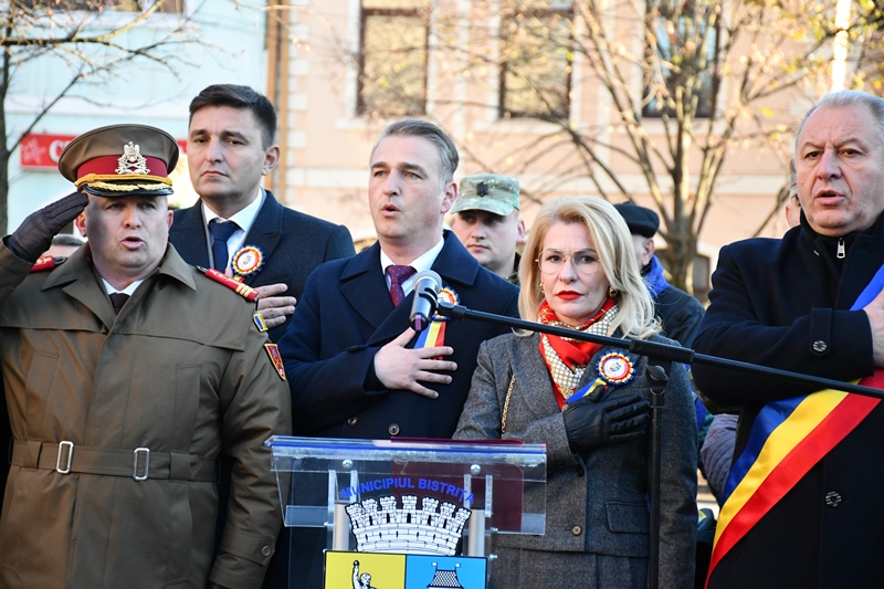 ”Astăzi, aici, în inima Bistriței, celebrăm cea mai importantă zi din istoria noastră – Ziua Națională a României. Este ziua în care ne amintim de curajul și de sacrificiile celor care au scris Marea Unire din 1918.