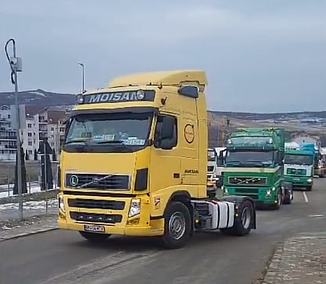 Peste 50 de autovehicule ale transportatorilor din Bistrița-Năsăud au participat, luni, la o nouă acțiune de protest organizată în municipiul Bistrița.